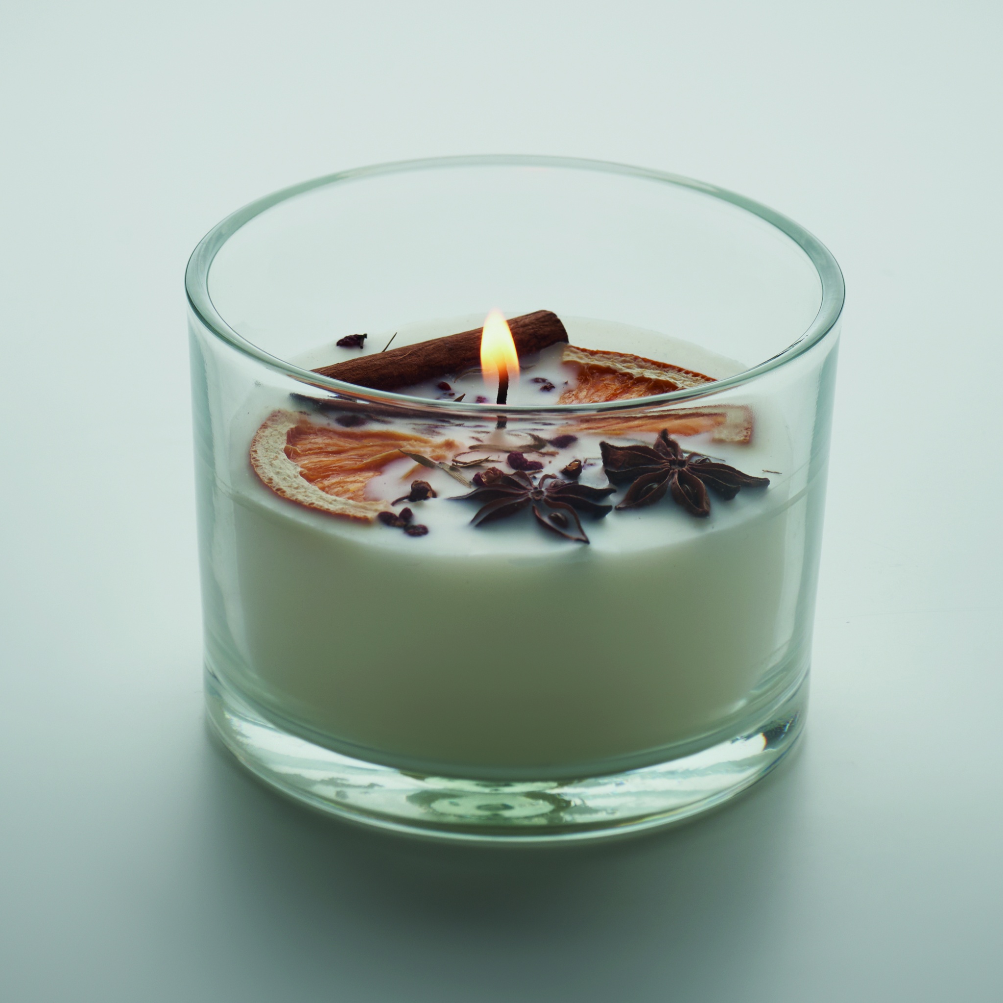 Kaneeli ja tsitruse lõhnaga taimepõhine vahaküünal kuivatatud lillede ja puuviljadega klaaspurgis. 300 gr. Põlemisaeg: 50 tundi.