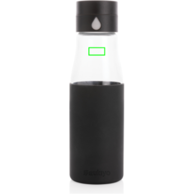 Logotrade firmakingi foto: Ukiyo klaasist hüdratatsiooni jälgiv varrukaga pudel