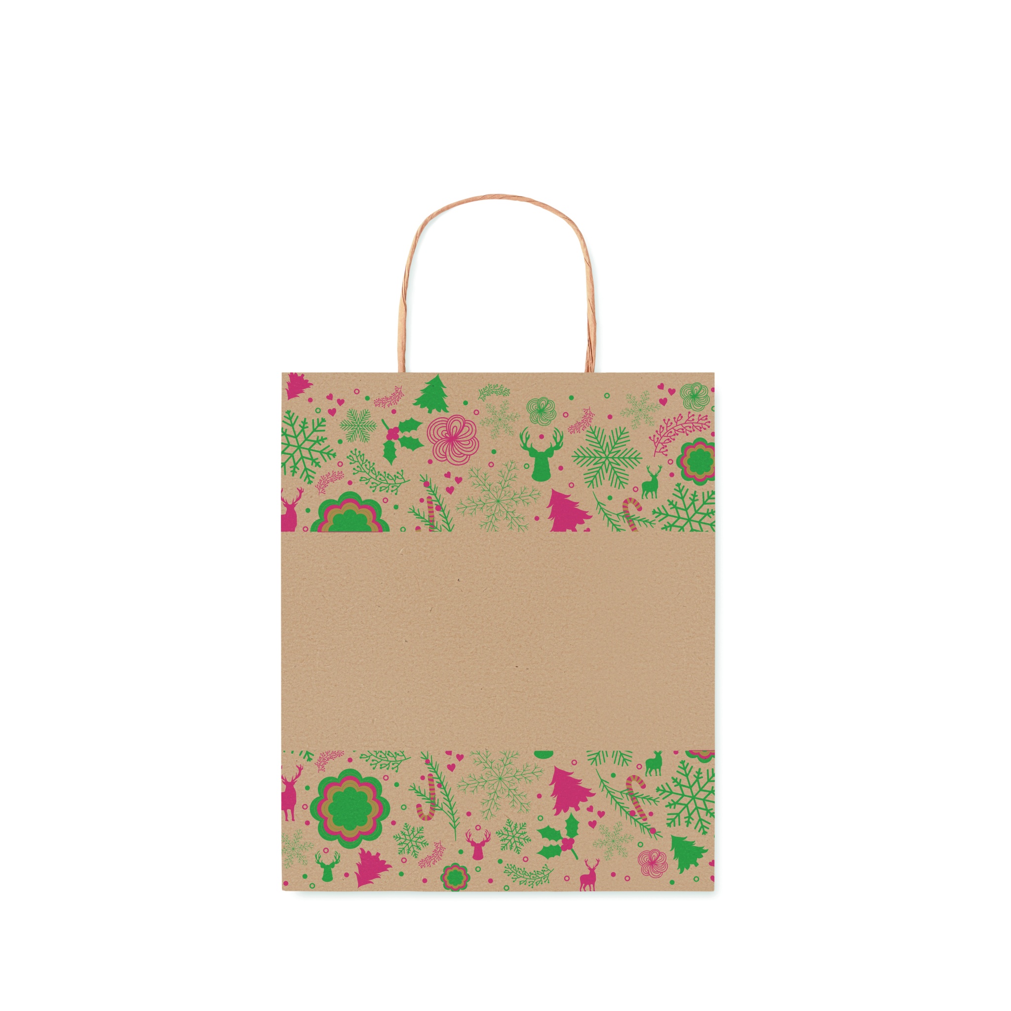 Väike jõulukinke paberkott (50% taaskasutatud) kott. 90 gr/m². Valmistatud EL-is.