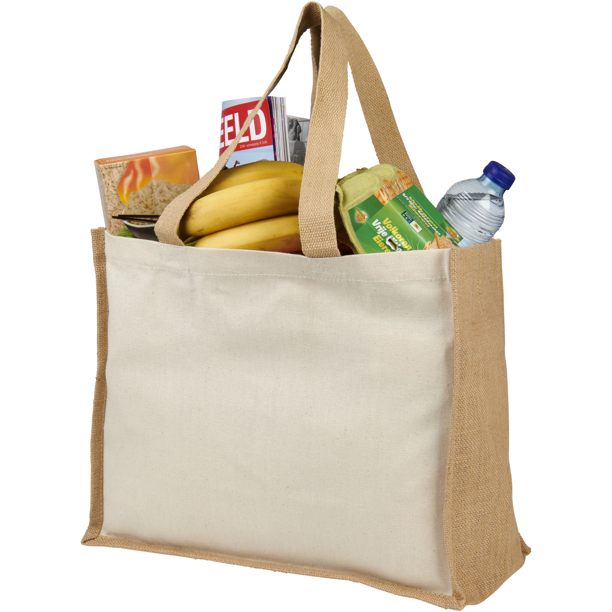 23-liitrine Varai lõuendist ja džuudist kandekott on ideaalne kott toidupoodide ostmiseks, nädalavahetustel väljasõitudeks või muudeks igapäevasteks asjatoimetusteks. 320 g/m² lõuendi ja 330 g/m² džuudist koosnev kombinatsioon annab kotile tugeva tunde ja vastupidavuse kuni 12 kg raskusele. Valmistatud Indias ja OEKO-Tex sertifikaat.