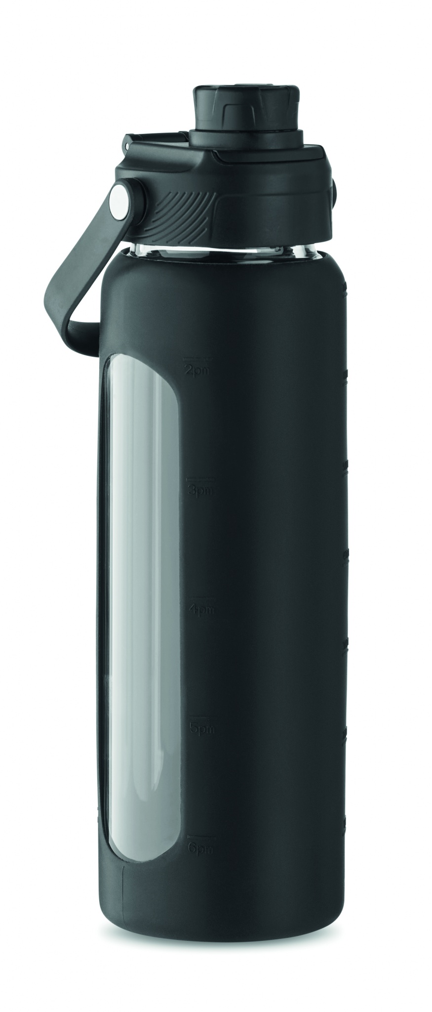 Kõrgborosilikaatklaasist pudel silikoonist läbipaistva ümbrisega PP-kaanega ja kandesangaga. Lekkevaba. Mahutavus: 750 ml.