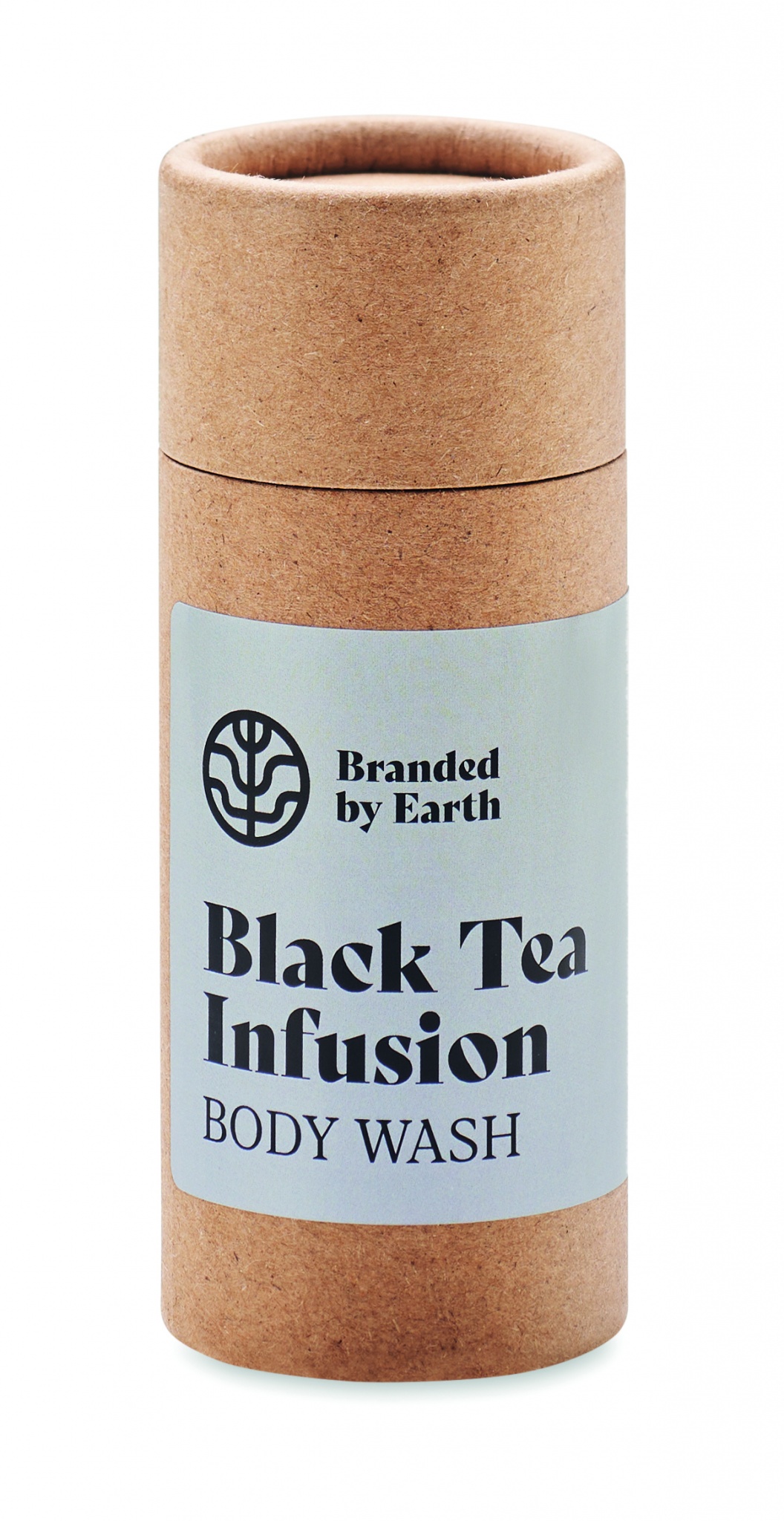 Unisex nädalavahetuse baar firmalt Branded By Earth. Sisaldab 12 vegan kehapesutükki, igaüks 4 gr. Esitatakse taaskasutatud paberist torus. Valmistatud EL-is.