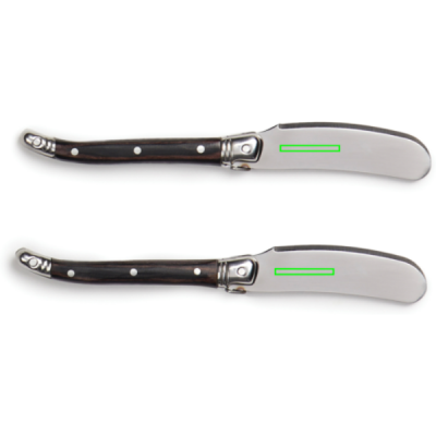 Eksklusiivne 2-osaline roostevabast terasest võinugade komplekt. Need noad sobivad suurepäraselt või või moosi määrimiseks röstsaiale, bagelitele, muffinitele ja muule. Kvaliteetsed roostevabast terasest terad tagavad sujuva ja pingutuseta levimise, samas kui tugevad pakka puidust käepidemed pakuvad mugavat haaret. Komplekt on pakitud eksklusiivsesse kinkekarpi, mistõttu on see ideaalne kingitus igaks sündmuseks.