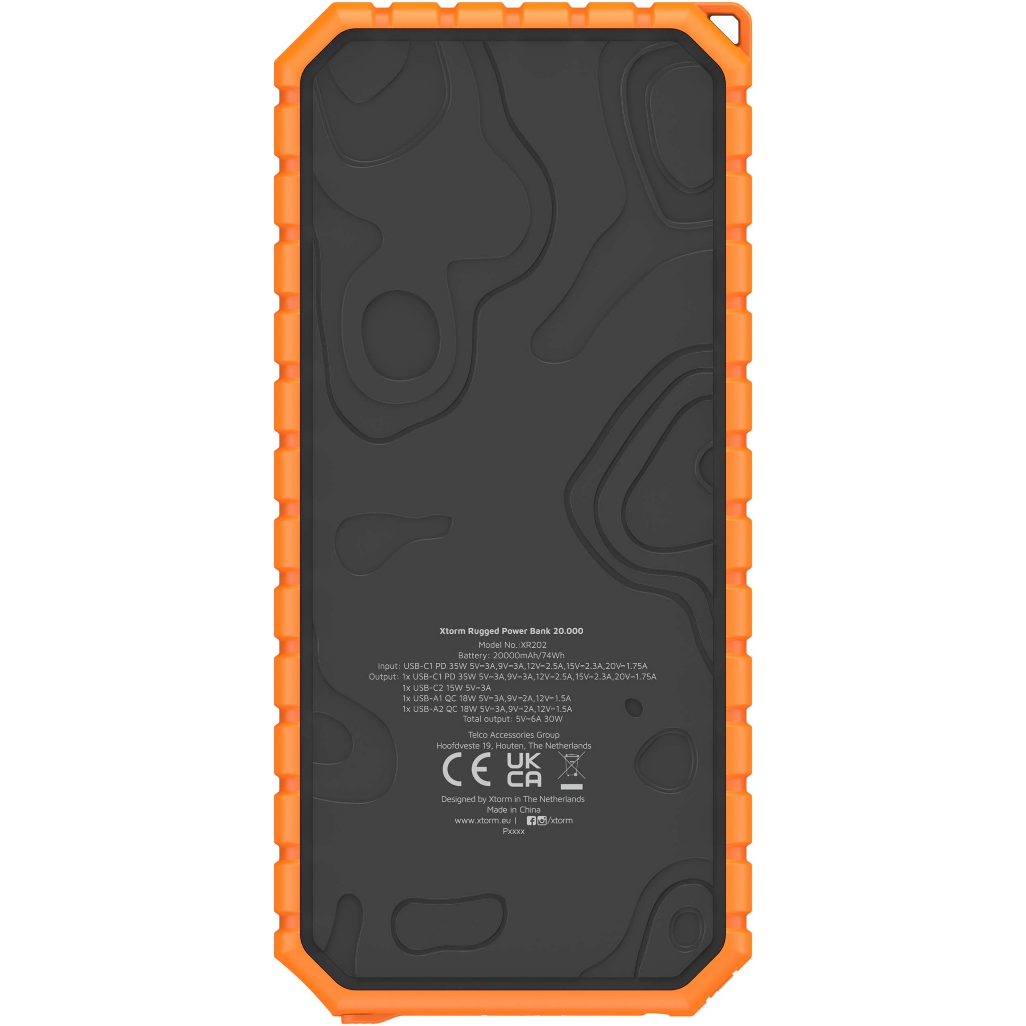 Xtorm XR202 Xtreme 20 000 mAh 35 W QC3.0 veekindel vastupidav akupank koos taskulambiga, Täismust/oranž