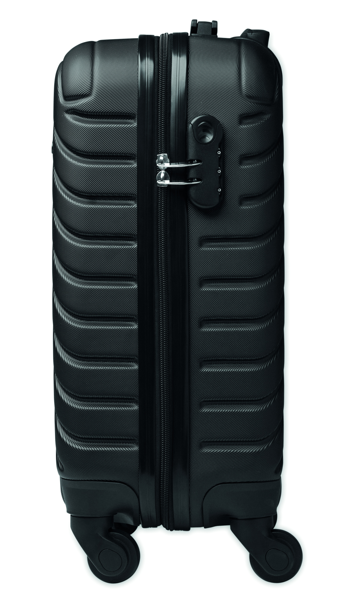 18 tuuman ABS-kovakuorinen vetolaukku. 1 päälokero ja sisäosasto. Sisältää turvalukon. Kulkee 4 pyörällä.