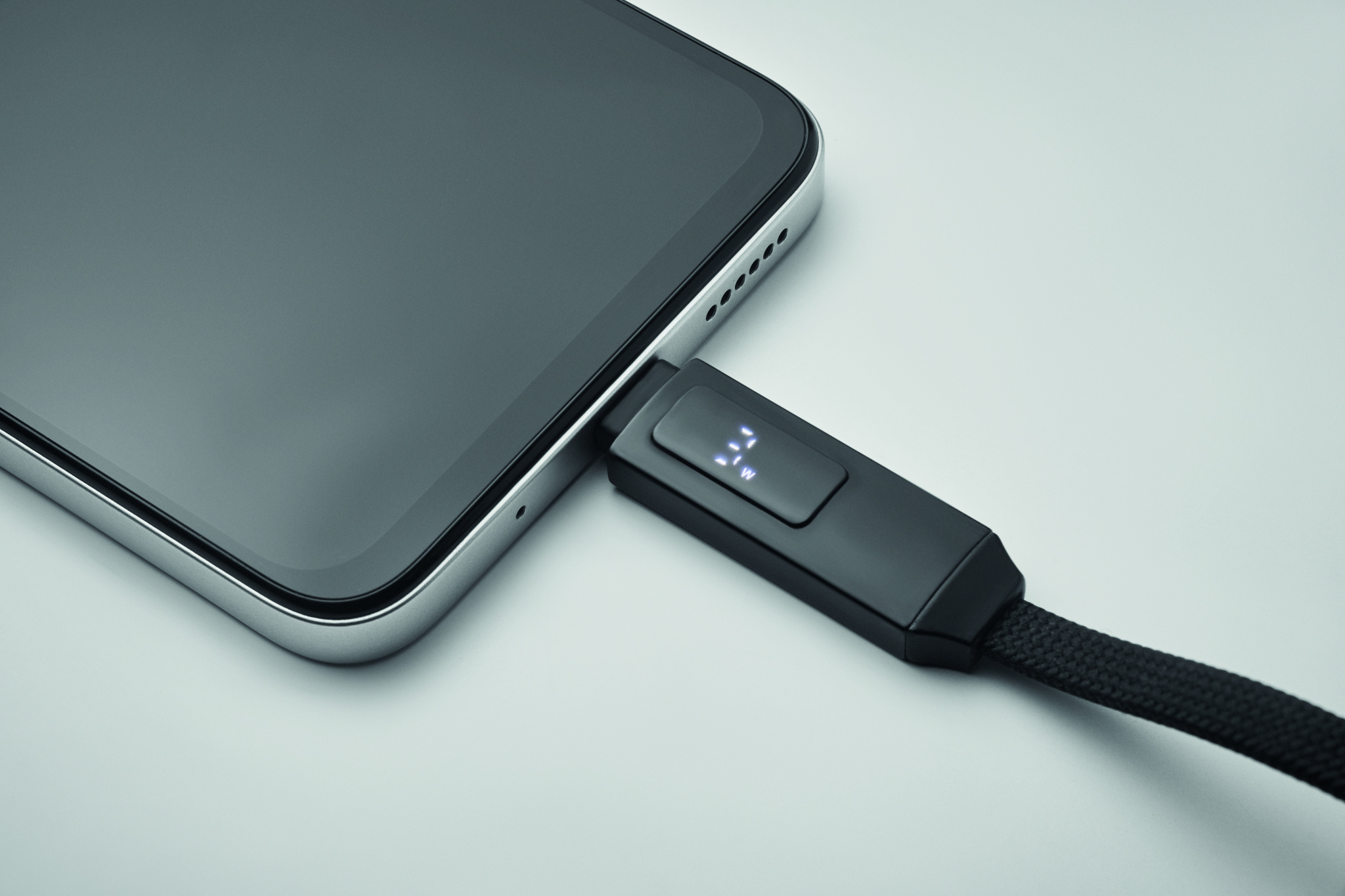 60 W:n lataus- ja datakaapeli avaimenperällä. C-C-C-liitin, LED-näyttö lataustehon näyttötoiminnolla. Magneettikiinnitys.