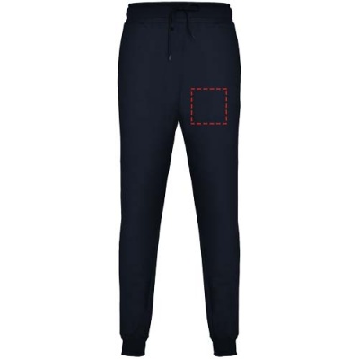 Urheiluhousut, joissa leveä säädettävä vyötärönauha, kiristysnyöri, tyköistuvat lahkeiden suut, vahvistetut saumat, uurretut sivutaskut ja tikattu kulmatasku. Irrotettava etiketti.