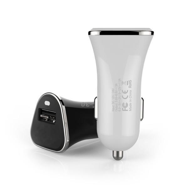 Täydellinen lisävaruste jokaiseen autoon. Voit ladata helposti kaikki nykyiset älypuhelimet ja paljon muuta tällä USB-laturilla. Liitä vain autosi tupakansytyttimeen. USB-portti lataa älypuhelimesi nopeasti Qualcomm Quick Charge QC3.0:n ansiosta. Siruratkaisut: Qualcomm QC3.0 Input: 12-24V Lähtö: 3,6V-6,5V/3A tai 6,5V-9V/2A tai 9V-12V/1,5A