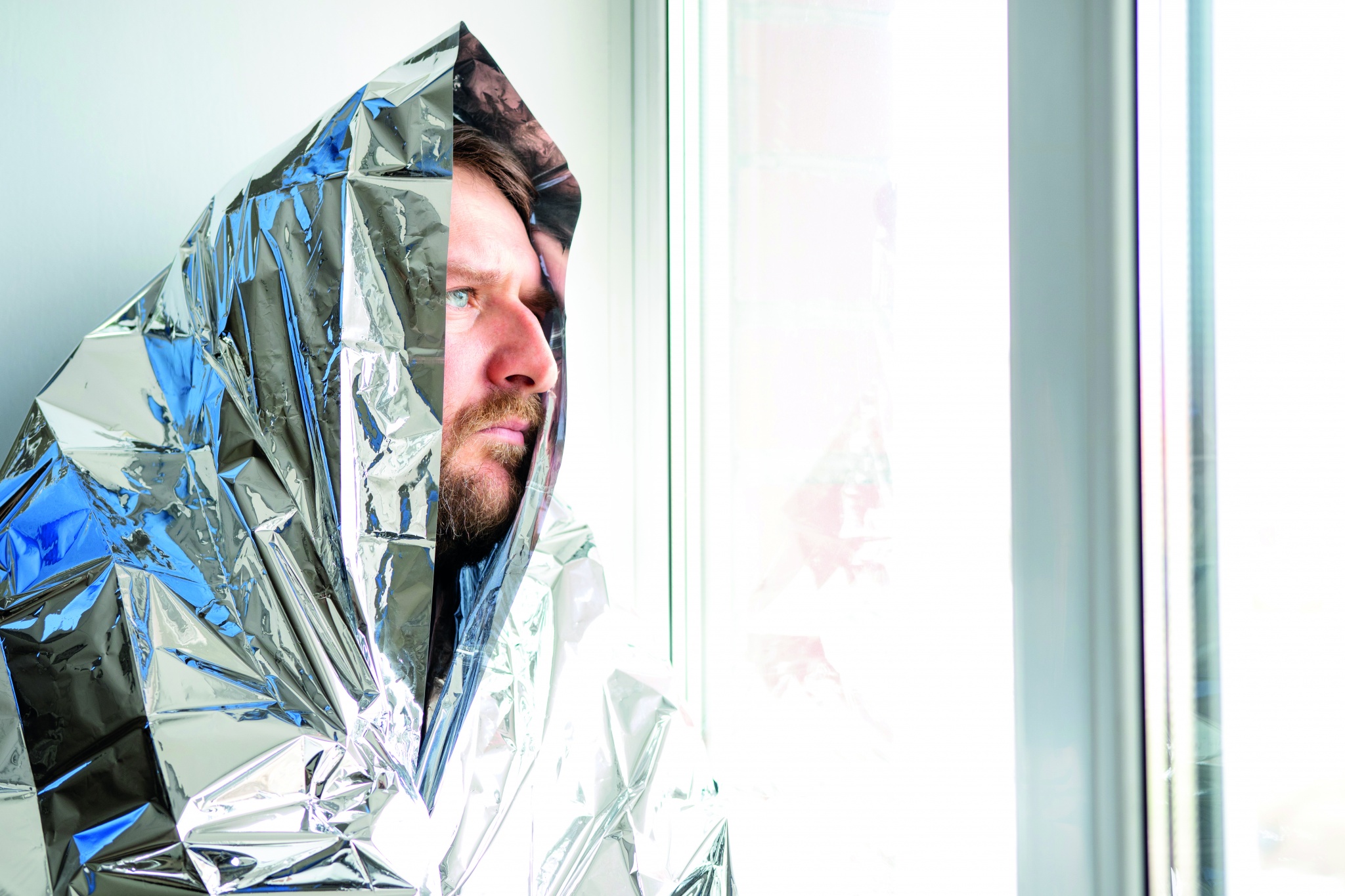 Avaruuslakana RPET-polyesteristä valmistetussa vetoketjupussissa. Peitteen koko 130 x 210 cm, paino 1,5 kg.