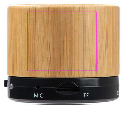 Tyylikäs Bluetooth-kaiutin bambukotelossa, sis. USB-latauskaapeli. Muut ominaisuudet: Micro SD -korttipaikka MP3-tiedostojen toistamiseen, AUX-liitäntä. Akun kesto n. 40-70 minuuttia. Laserimme logosi koteloon.
