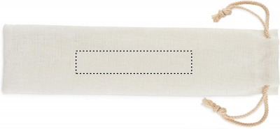 Uudelleenkäytettävä bambu- aterinsarja, canvas pussissa. Sisältää veitsen, haarukan, lusikan ja pillin, teräksestä valmistetun harjan pillin puhdistamiseen.