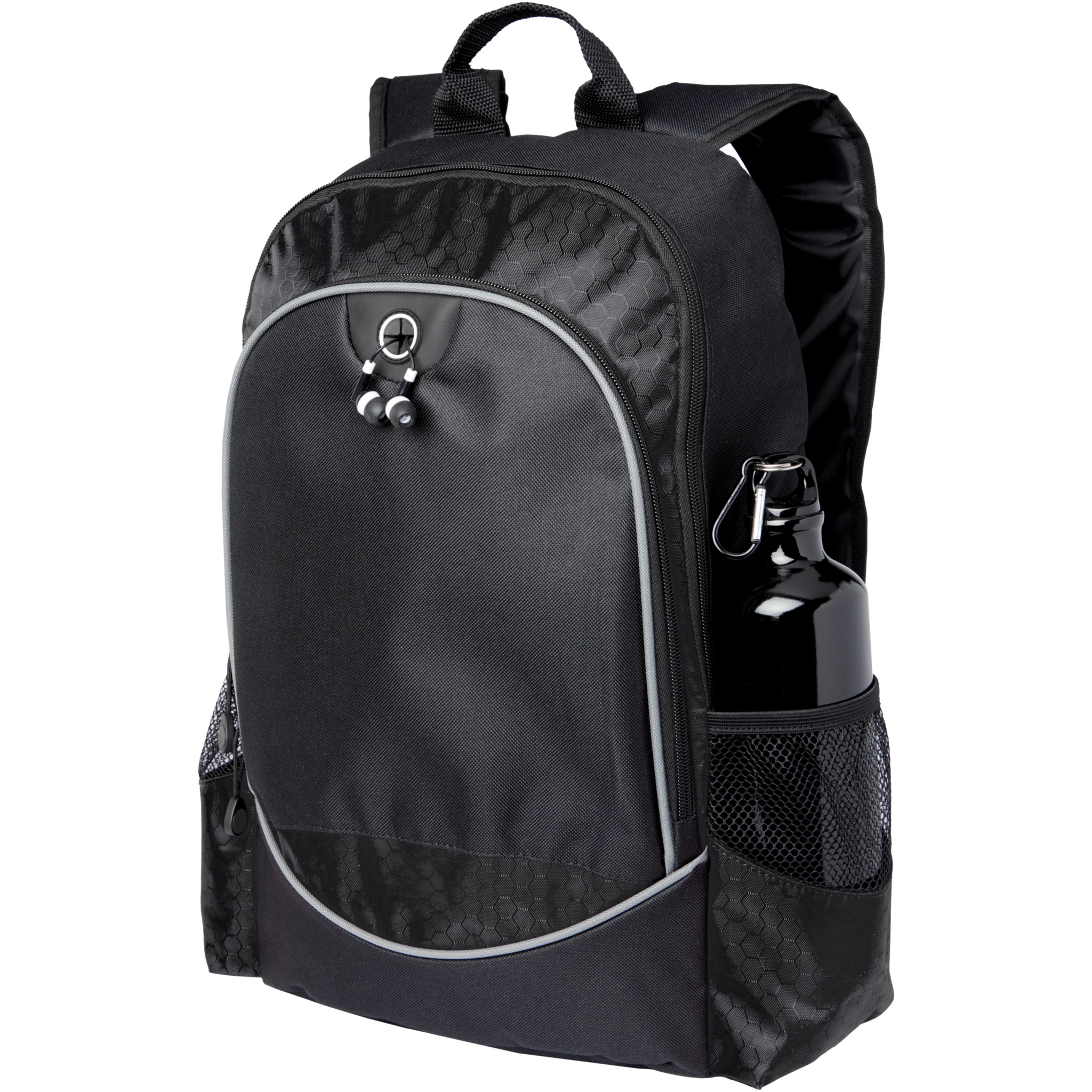 Vetoketjullinen säilytystasku 15" läppärille. Mukana pehmustettu säilytystasku iPadille tai tabletille. Iso vetoketjullinen etutasku. Väliseinä ja korvanappiliitin. Kaksi sivutaskua. Säädettävät, pehmustetut olkahihnat ja vahvistettu kantokahva. Tarvikkeet rekvisiittaa.