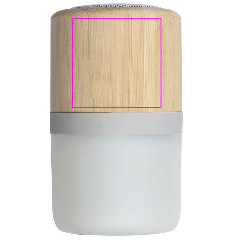 ABS:stä ja bambusta valmistettu Bluetooth 5.0 -kaiutin väriä vaihtavalla LED-valolla, 300 mAh:n akulla, latausaika 2 tuntia ja kantama jopa 10 metriä. Logosi asetetaan kaiuttimeen.