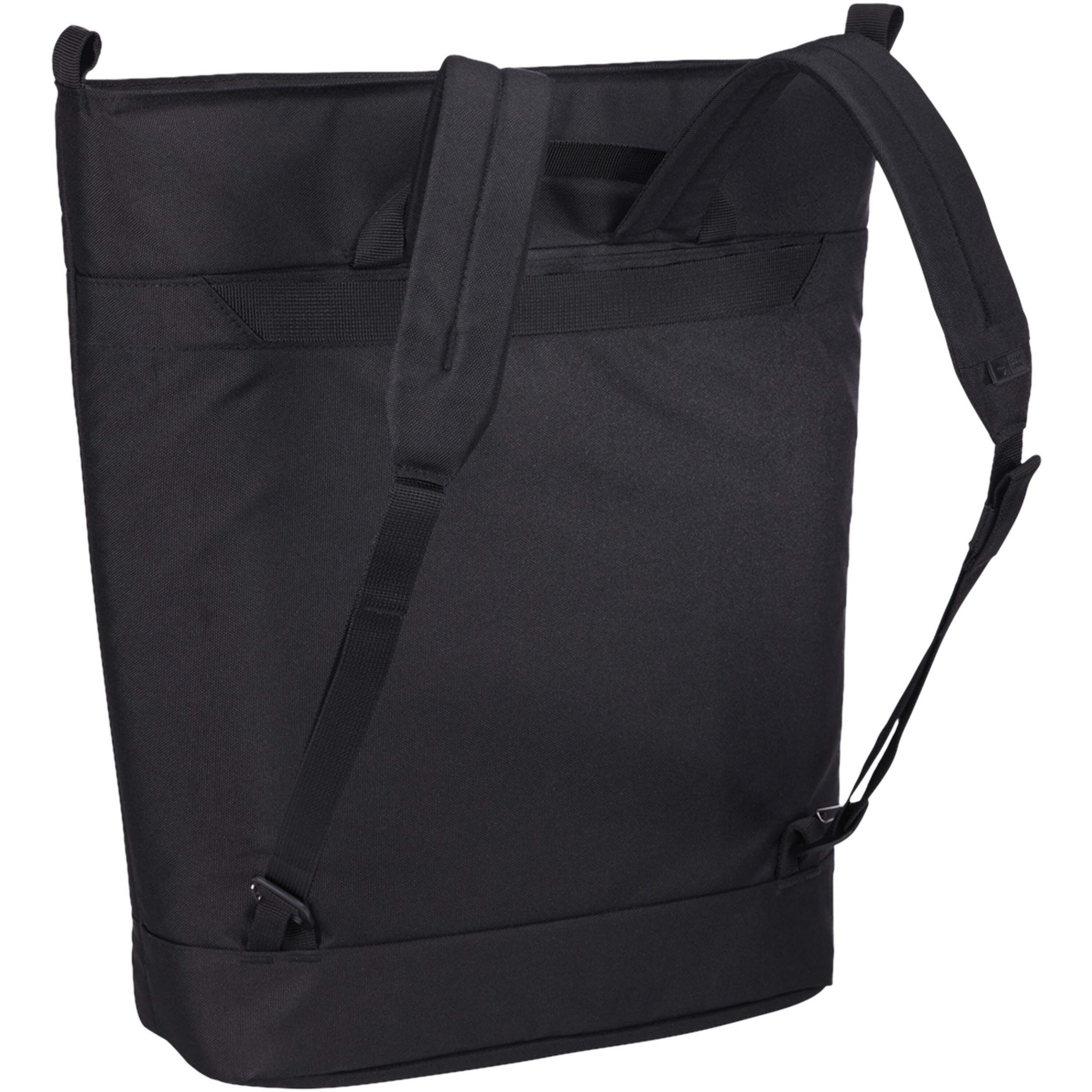 Muunneltavassa Case Logic Invigo kassissa on hienostunut ja tyylikäs muotoilu ja käteviä järjestelyominaisuuksia. Kassin ulkopuoli on valmistettu 100-prosenttisesti kierrätetystä 600D-polyesterista ja vuori 150D-polyesterista. Pehmustettu kannettavan tietokoneen tasku suojaa 15,6 tuuman tietokonetta, ja tablettitaskuun mahtuu 12,9 tuuman tabletti. Laita pehmustettu olkahihna repun sisään, ja repusta tulee olkalaukku, tai irrota olkahihna ja käytä laukkua reppuna. Laukkuna käytettäessä repun olkaimet säilyvät siististi pienessä takapaneelin taskussa. Etupaneelin vetoketjullinen tasku tarjoaa helpon ja kätevästi käytettävän säilytystilan pienille tarvikkeille. Päälokerossa on vesipullon säilytystasku ja takapaneelissa iso säilytystasku muita tavaroita varten. Laukussa on myös matkalaukkuhihna, jonka avulla kassi voidaan kiinnittää vedettävään matkalaukkuun vaivatonta matkustamista varten.