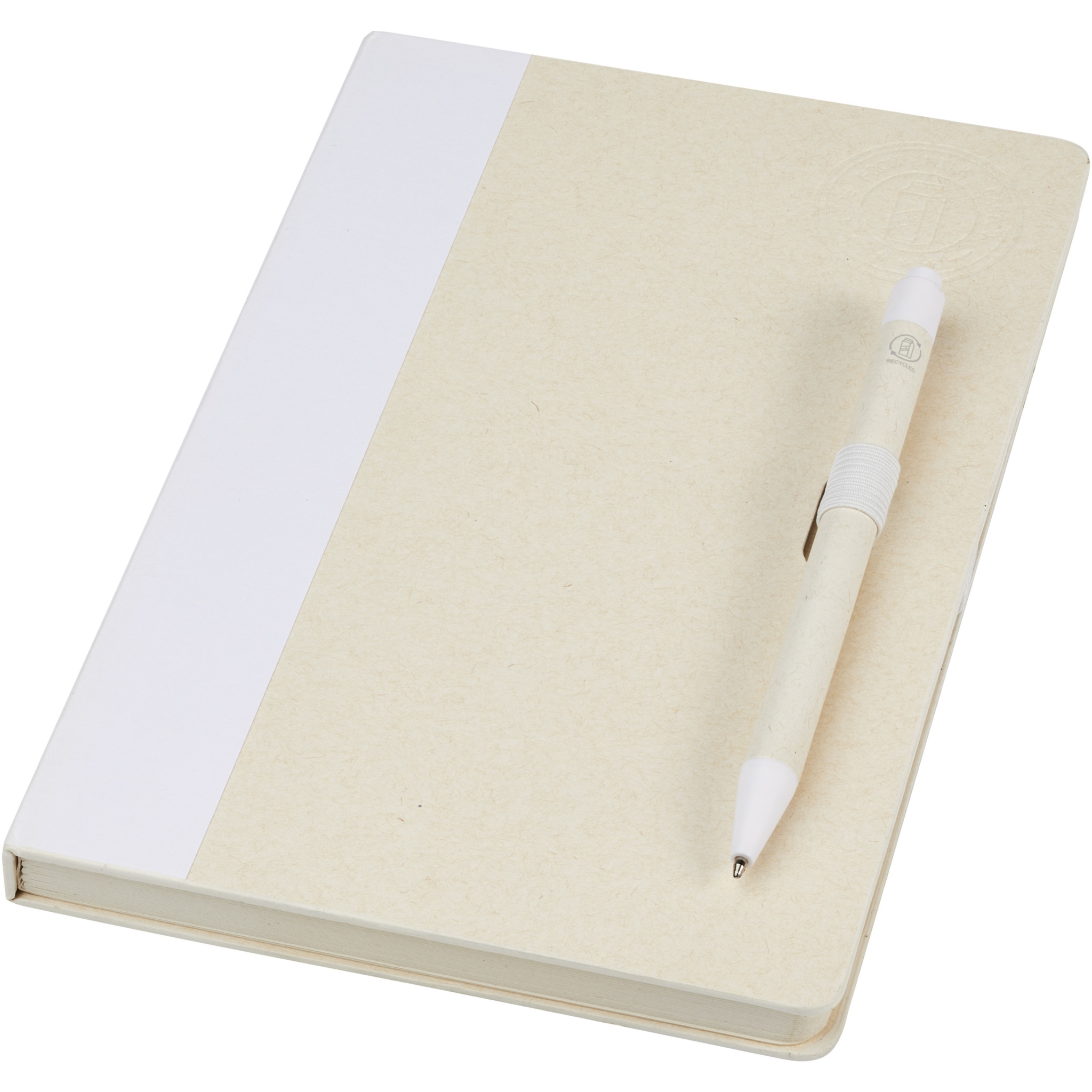 A5-kokoinen muistikirja ja kuulakärkikynäsetti. Tässä muistikirjassa on 80 kierrätetyistä maitotölkeistä (jopa 70 %) valmistettua viivoitettua sivua (80 g/m²), värillinen paperiselkämys ja kynäsilmukka. Kynäsilmukassa on muistikirjan väriä vastaava kuulakärkikynä napsautusmekanismilla. Kynän varsi on valmistettu samasta kierrätettyjen maitopakkausten materiaalista ja sen painike, klipsi ja kärki ovat valmistettu värillisestä PLA-muovista. Musta muste. Käytetyt maitotölkit kerätään, lajitellaan, käsitellään ja muutetaan paperiksi, jolloin jäte todella pääsee hyötykäyttöön.
