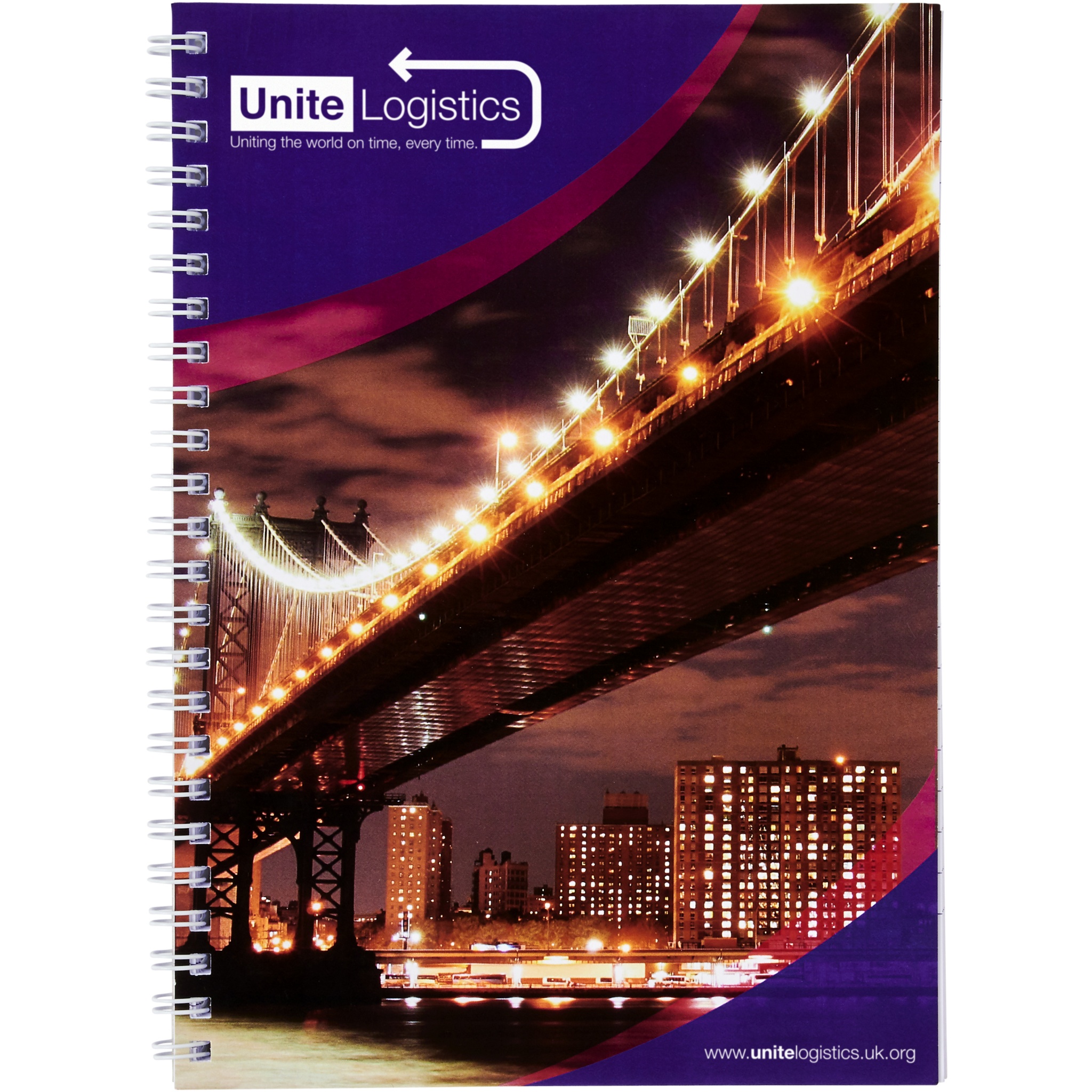 A5-muistikirjassa on valkoinen tai musta kierre, 80 g/m2 tyhjiä paperiarkkeja ja kiiltävä etu- ja takakorttikansi (250 g/m2). Vakiomallissa on 50 sivua, mutta muistikirja on saatavana myös 80-sivuisena. Painatus on mahdollinen sivuille sekä etu- ja takakansille.