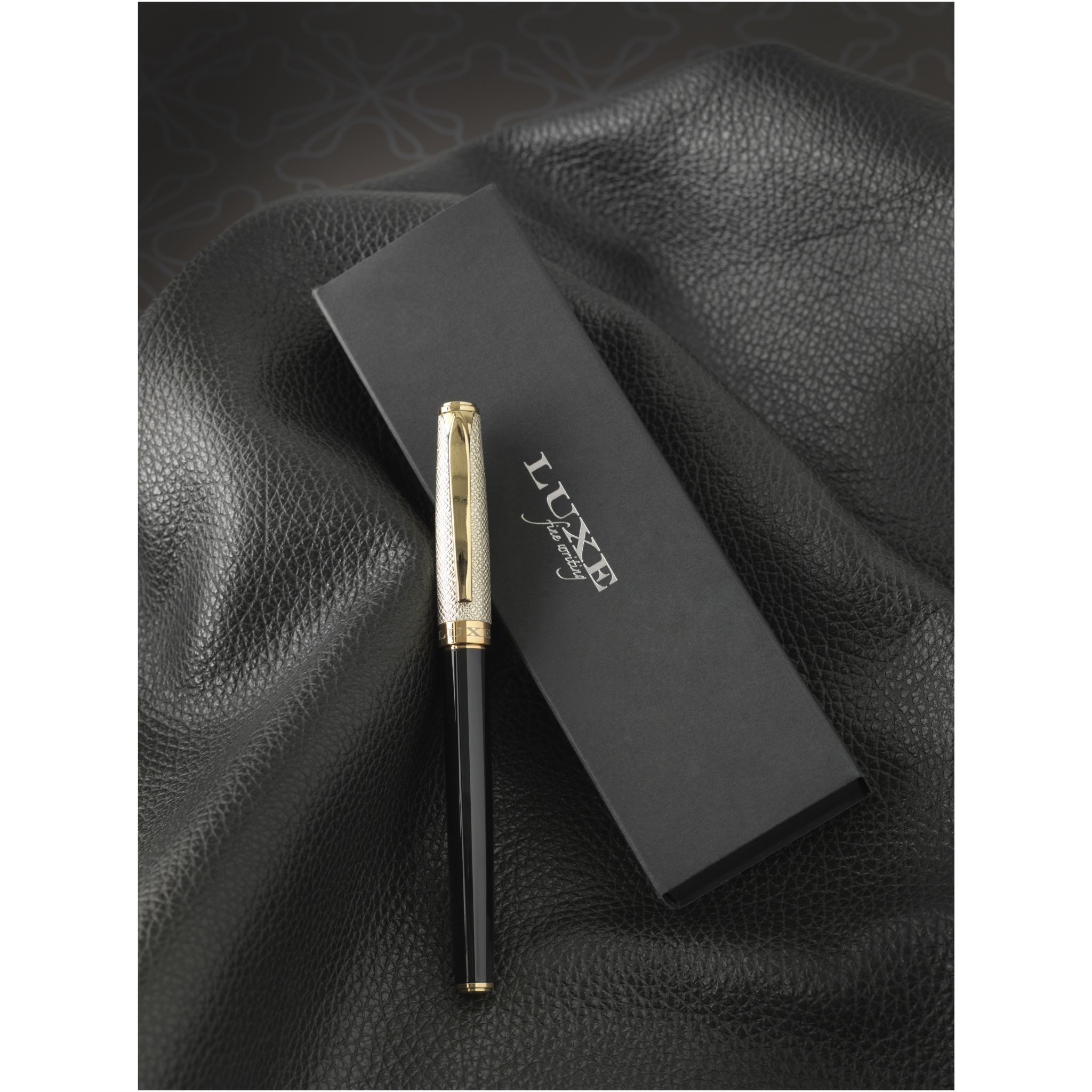 Ylellinen pallokärkikynä, jossa kullanvärinen nahkakorkki ja lakatut kullanväriset osat, toimitetaan Luxe-lahjapakkauksessa. Alempi kotelo on valmistettu lakatusta messingistä, ylempi kotelo messinkiä ja polyuretaania. Pallokärkikynä: 14 cm x 1,15 cm, paino: 32 g, kirjoituspituus: 500 m.