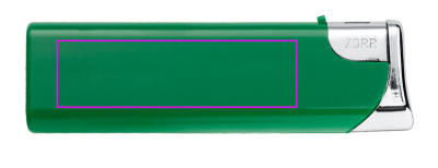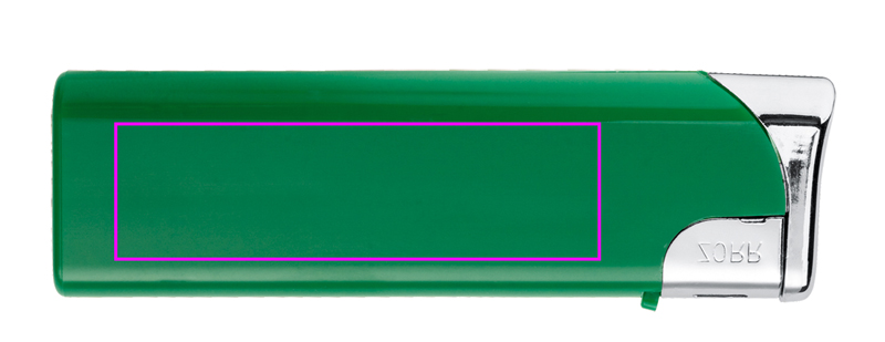 Uudelleen täytettävä muovinen sähkösytytin. Tietenkin tässä mallissa on pakollinen lapsilukko. Painamme logosi sytyttimen toiselle puolelle.