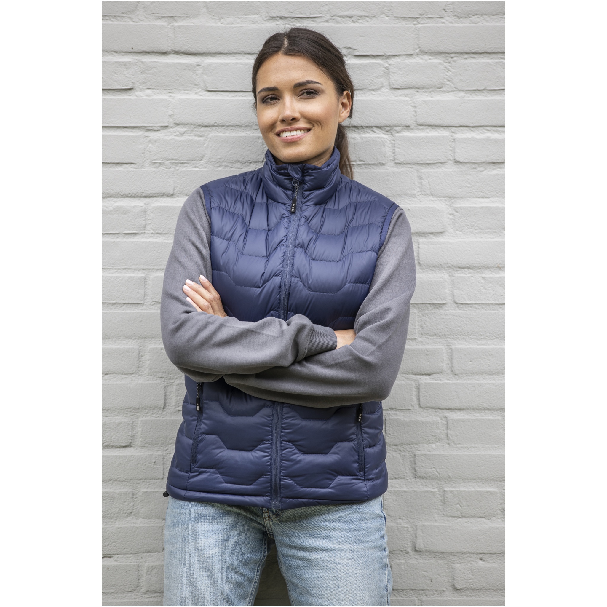 Epidote naisten GRS-kierrätetty untuvaliivi - vastuullinen ja tyylikäs valinta ympäristötietoisille ulkoilijoille. Liivi on täysin GRS-sertifioitu, mikä tekee siitä vastuullisemman valinnan vaatekaappiisi. Mukavuutta ja lämpöä varten suunniteltu hunajakennomainen tikkaus on moderni ja parantaa eristävyyttä, GRS-sertifioitu kierrätetty nylon dull cire 380T -kudottu kangas on vastuullinen ja säänkestävä. Jopa yksityiskohdat kuten vetoketjut, on valmistettu kierrätysmateriaaleista. Liivin jokainen osa edistää vihreämpää planeettaa. Käytännöllisillä ominaisuuksilla varustetussa Epidote-liivissä on vetoketjulliset taskut ja sisätasku turvallista säilytystä varten. Myrskyläppä leukasuojalla suojaa sinua säältä ja joustava kiristysnauha säädettävällä narulukolla helmassa takaa paremman istuvuuden. Hupun joustava reuna antaa lisäsuojan kylmää tuulta vastaan. RDS-sertifioidut kierrätyshöyhenet antavat lämpöä eettisistä standardeista tinkimättä. GRS-sertifiointi takaa 100-prosenttisesti sertifioidun toimitusketjun, joten tämä vaate on todella ympäristötietoinen valinta. Muotoonleikattu naisille.