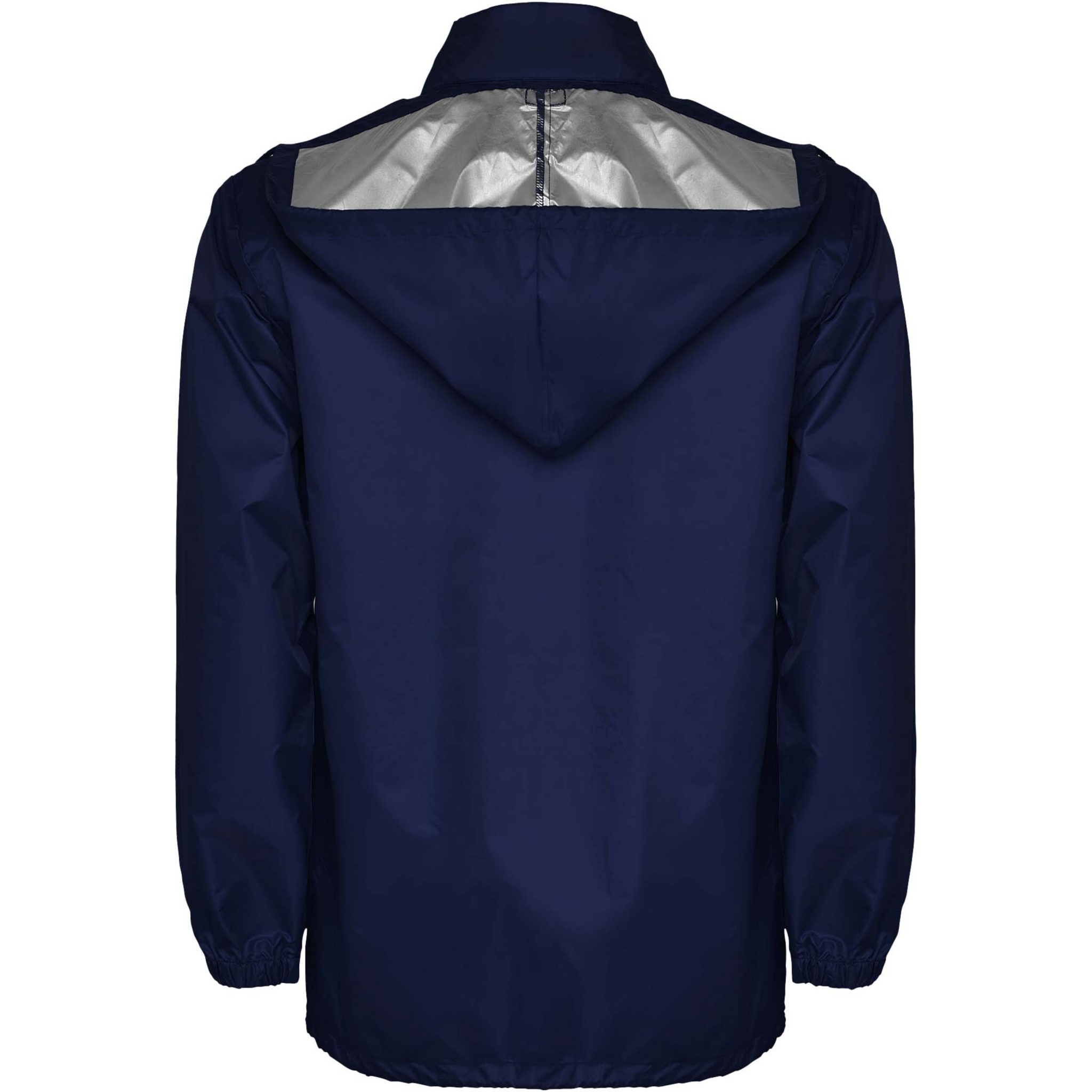 Vedenpitävä sadetakki. Korkea kaulus ja irrotettava huppu säädettävillä nauhoilla. Keskellä vetoketju ja saman sävyinen vedin. Kaksi sivutaskua suojaavilla listoilla. Joustavat hihansuut. Joustava nauha tasku sisäpuolella viikkaamista ja säilytystä varten. Kuvan malli on 185 cm pitkä ja hänellä on päällään koko L.