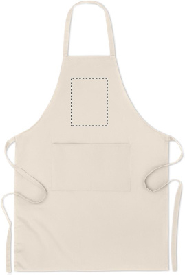 200 gr/m² orgaanisesta puuvillasta valmistettu esiliina, 2 etutaskulla.
