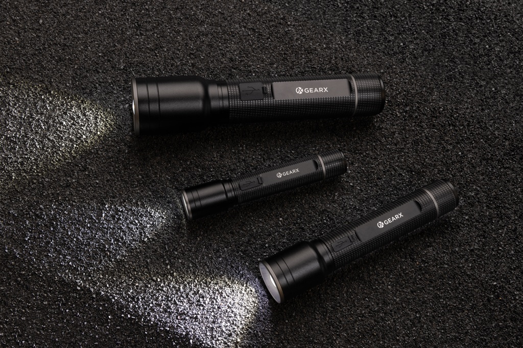Gear X iso USB-uudelleenladattava taskulamppu, musta