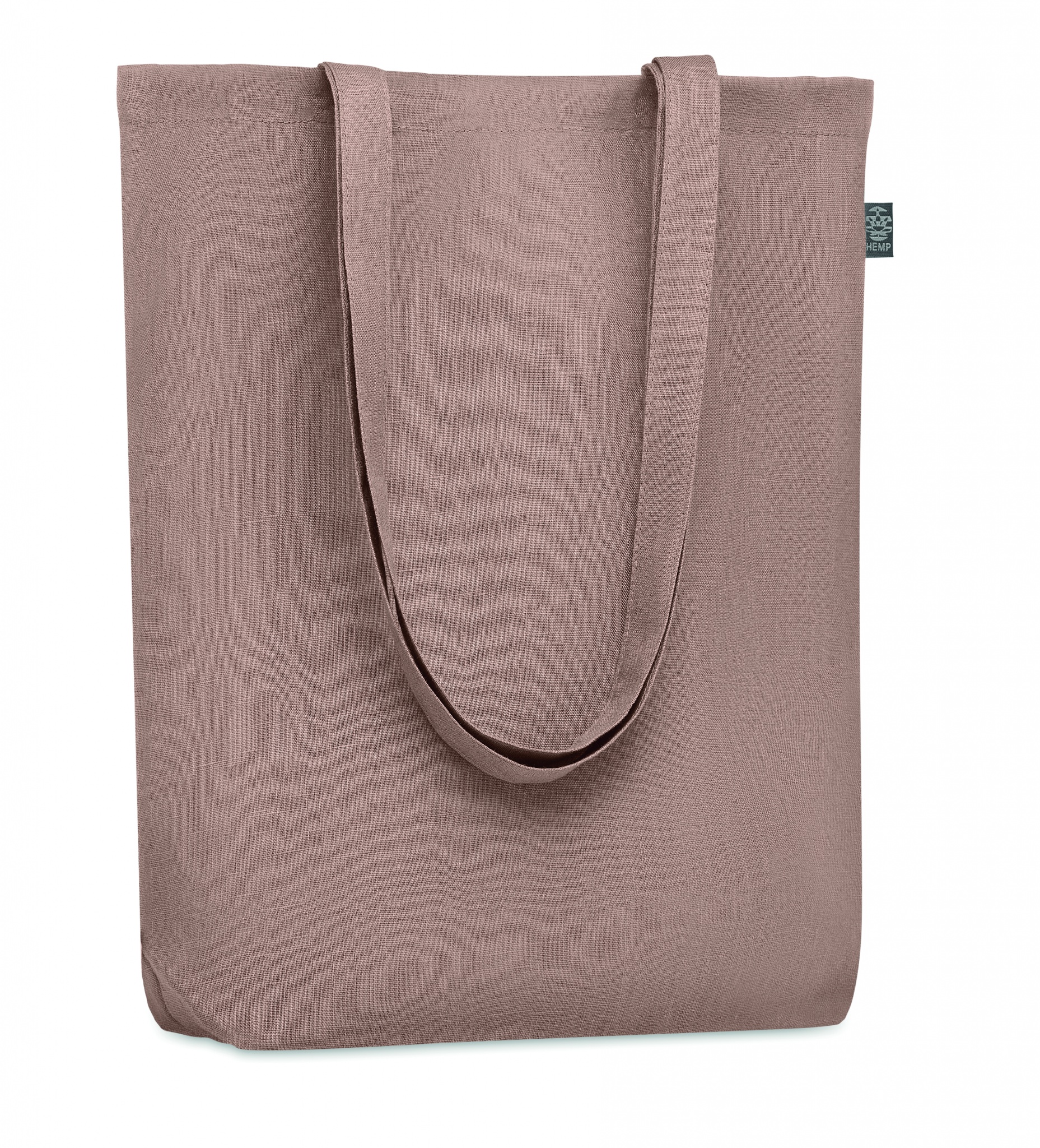 200gr/m² 100% hamppukankaasta valmistettu laukku, pitkillä kahvoilla ja pohja levikkeellä.