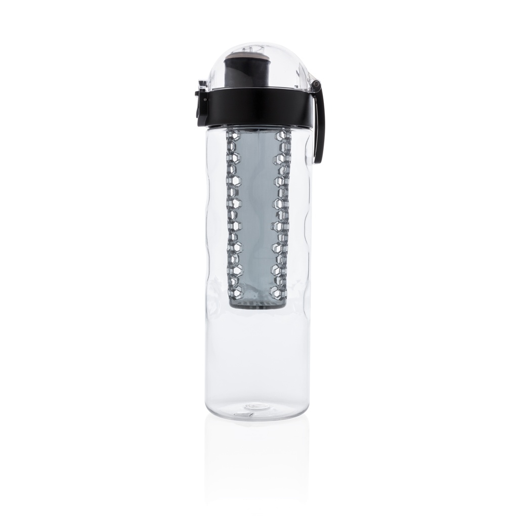 Lisää terveellisiä hedelmän makuja veteesi. Tämä hunajakenno-yksityiskohdilla varustettu pullo mahdollistaa kätevän yhden käden juomisen. Paina painiketta ja kansi aukeaa. Käytössä on erityinen lukitusmekanismi, jotta käyttäjät eivät vahingossa paina painiketta. Sisältää kantohihnan. Tämä infuusiopullo on valmistettu kestävästä ja innovatiivisesta tritanista. Hajuton ja 100% BPA-vapaa. Sisältö: 700ml. Rekisteröity design®