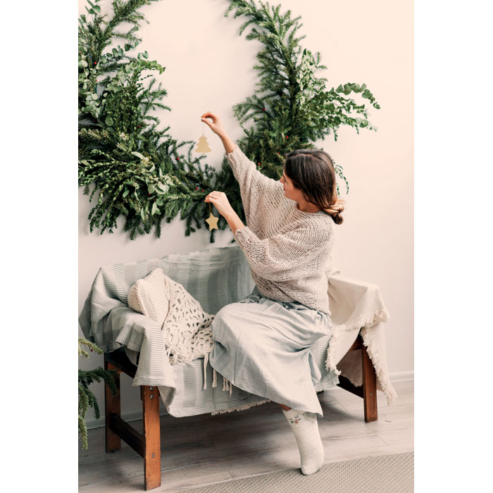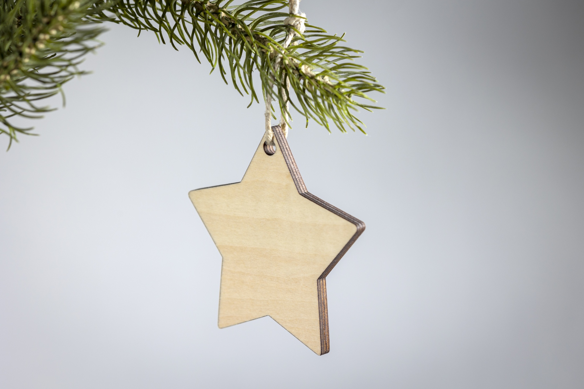 Vanerista valmistettu joulukoriste juuttiköydellä. Sublimaatiopainatus ei tue valkoisen värin painatusta.