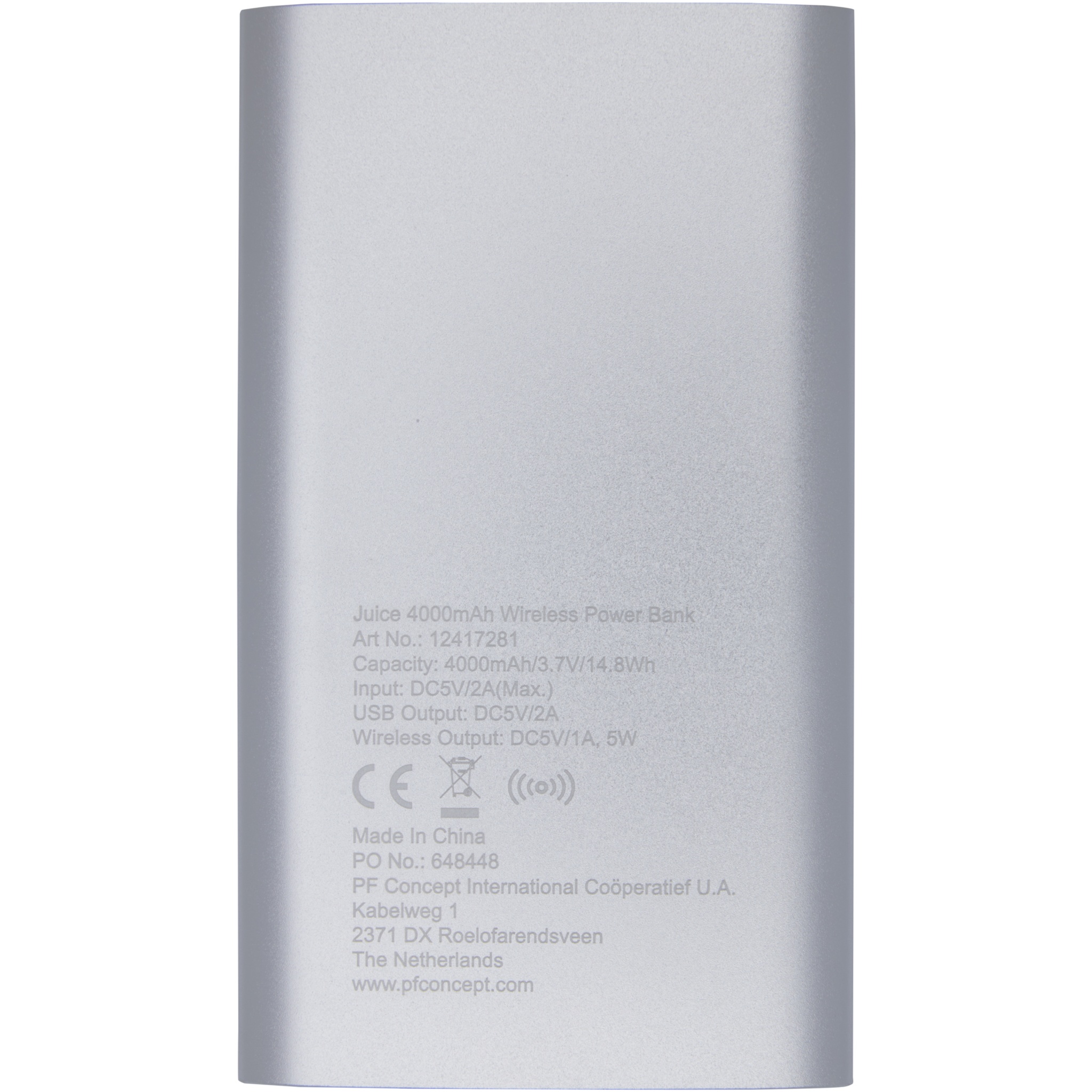 4000 mAh:n varavirtalähde alumiinikuorella. Tukee langatonta 5 W:n latausta, ja mukana tulee myös kaapelilla lataamisen mahdollistava Micro-USB-lähtö. Laturin 4000 mAh:n litiumpolymeriakku riittää älypuhelimen lataamiseen täyteen lataukseen. Virran merkkivalo näyttää lataustason jatkuvasti. Micro-USB-portti: 5 V/2 A ulostulo: 5 V / 2 A. Langaton 5 W:n lähtö. Mukana PVC-vapaa TPE-muovista valmistettu latauskaapeli. Toimitetaan lahjapakkauksessa.