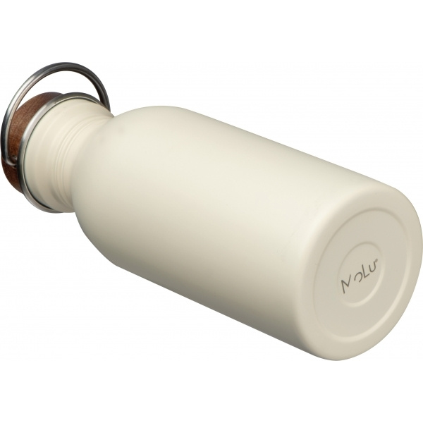 Kierrätetystä ruostumattomasta teräksestä valmistettu juomapullo, suljettu akaasiapuukorkilla, varustettu kantokahvalla. Tilavuus 500 ml.
