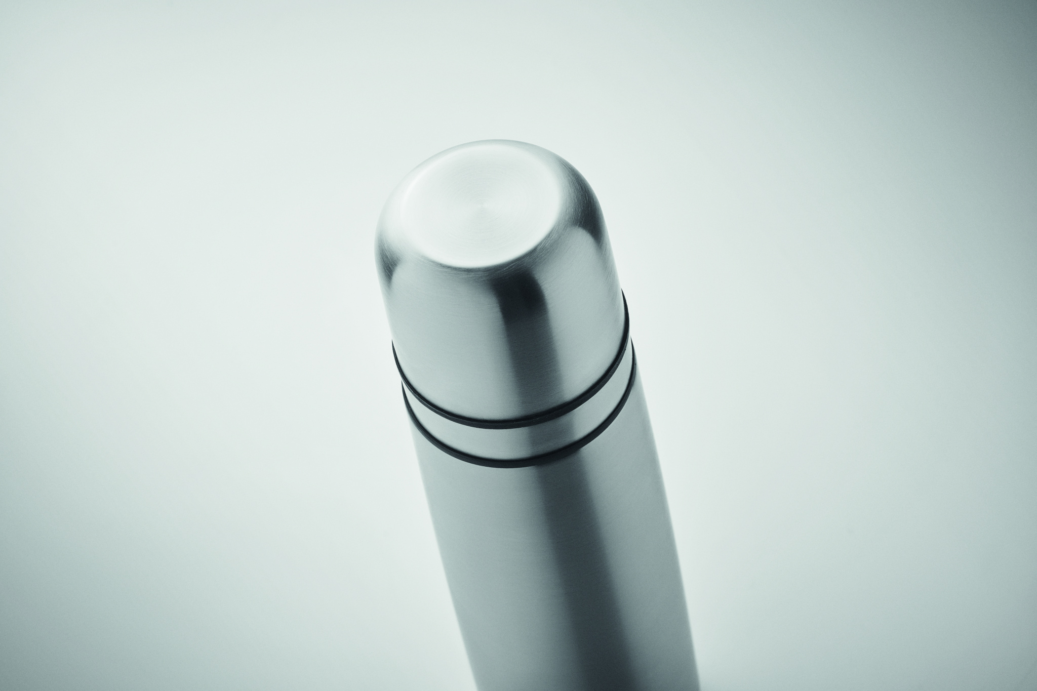 Kaksiseinämäinen kierrätettyä ruostumatonta terästä (90 % kierrätettyä ruostumatonta ja 10 % ruostumatonta terästä) eristetty tyhjiöpullo, jossa on 2 integroitua kuppia (sisäseinä PP) kannessa. Pullon tilavuus: 750 ml, ulompi kuppi: 150 ml, sisäkuppi: 125 ml.