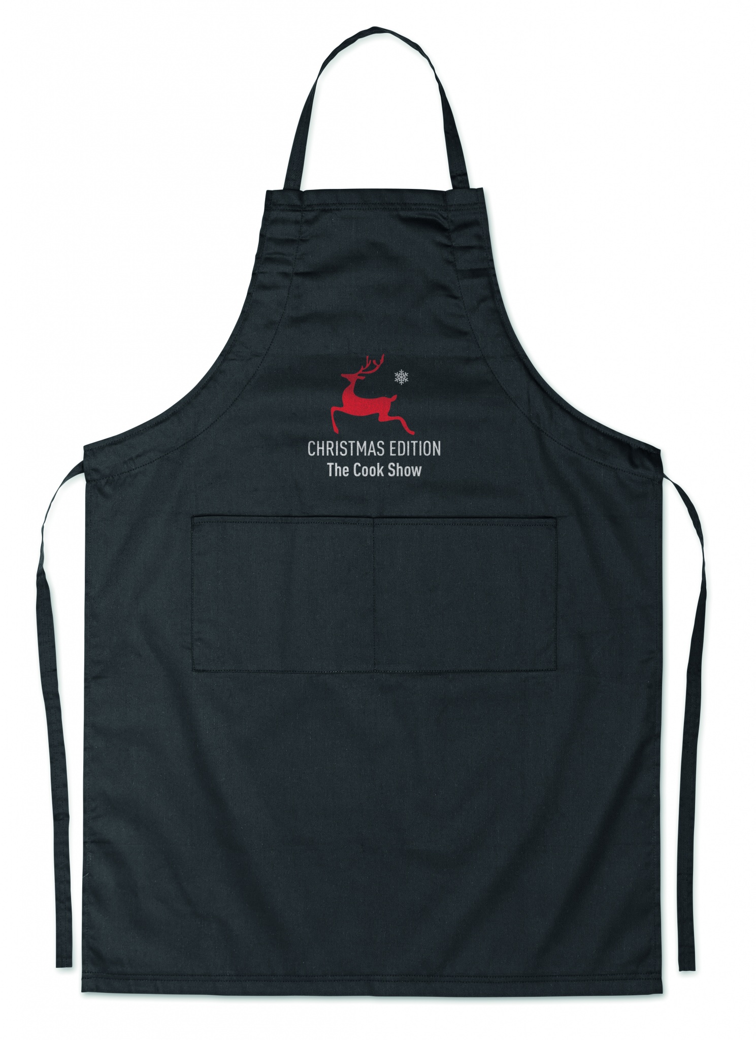 190gr/m² säädettävä keittiöesiliina kahdella etutaskulla, 10% puuvillaa ja 90% polyesteriä.