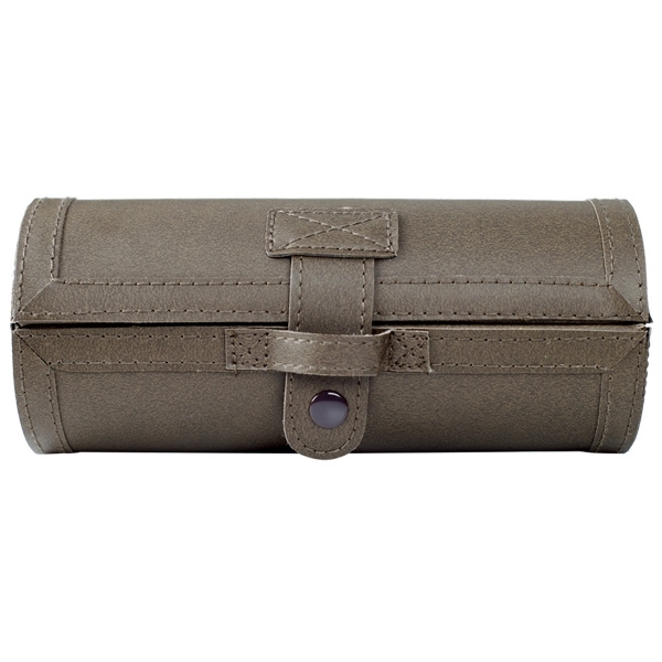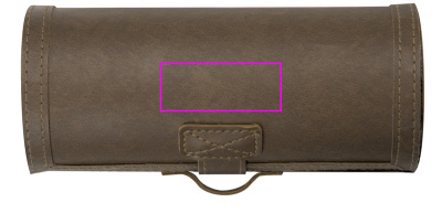 Keinonahkainen kengänkiillotusrulla, jossa läpinäkyvä kenkävoide, sieni, kenkäharja, kenkälusikka, kiillotusliina ja kerma-applikaattori. Painamme logosi koteloon.