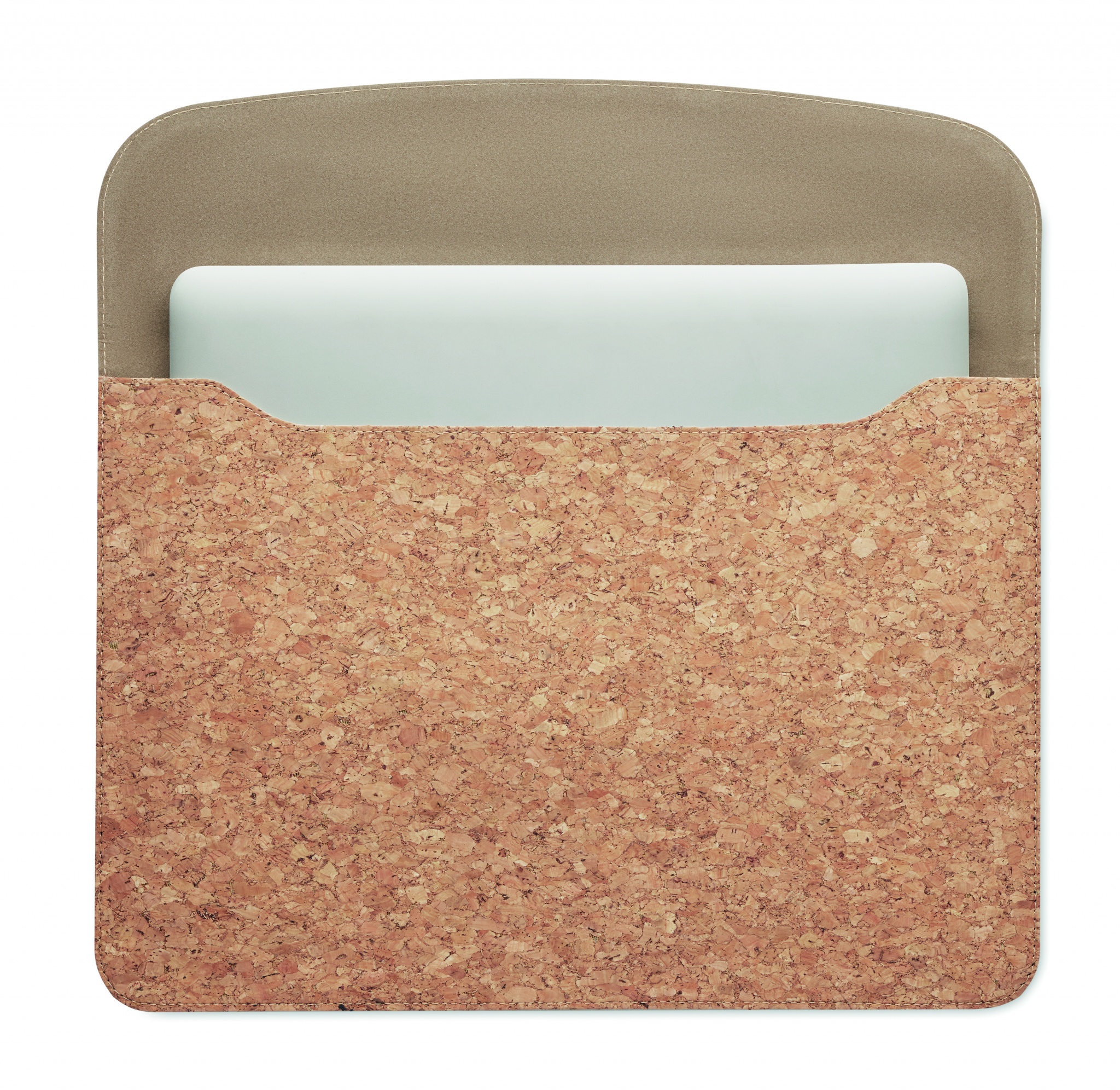 14 tuumainen korkki tietokonelaukku, magneettisella sulkimella. Koko 37x26 cm. Korkki on luonnonmateriaali, strukturaalinen laatu ja pinnan huokoisuus voi aiheuttaa eroavaisuuksia tuotteissa painatuksen jälkeen