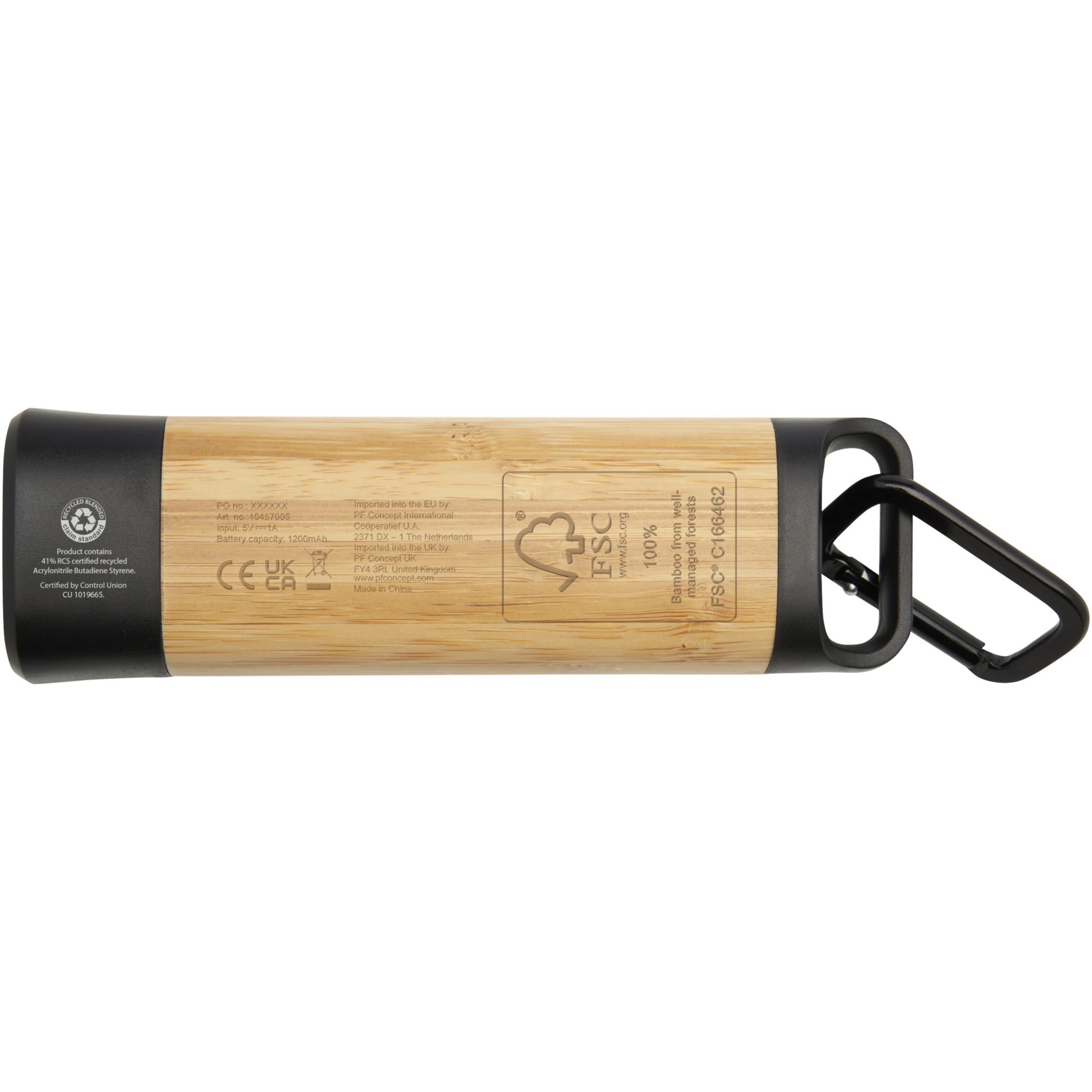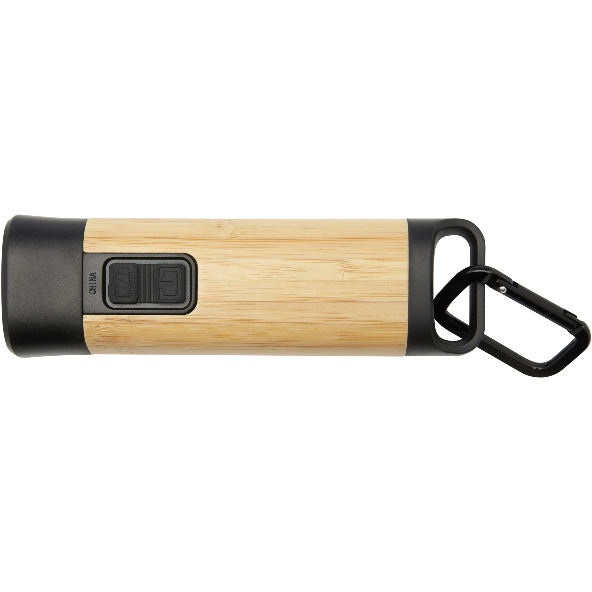 Kuma-taskulamppu jousihaalla on valmistettu sertifioidusta bambusta ja 41-prosenttisesti RCS-sertifioidusta kierrätysmuovista, joten se on ympäristöystävällisempi valinta ulkoiluhetkiin ja tee-se-itse-projekteihin tai avuksi sähkökatkoksiin. Mukana tehokas 3 W:n COB-valonlähde, jossa on saatavilla kolme eri valotilaa. Kuma tuottaa täyteen ladattuna 80 lumenia valoa jopa 100 metrin säteen etäisyydelle. Taskulampussa on suuren kapasiteetin 1200 mAh:n Li-ion 18650 -akku, joka takaa pitkäikäisyyden ja luotettavuuden ja tuottaa 3,5–4,5 tuntia yhtäjaksoista valaistusta yhdellä latauksella. Mukana tulevan alumiinisen jousihaan ansiosta taskulamppu on helppo kiinnittää reppuihin, vöihin tai varusteisiin, joten se on luotettava kumppani retkeilyyn tai patikointiin. Koska bambu on luonnollinen tuote, tuotteen värissä ja koossa voi olla pieniä eroja, jotka voivat vaikuttaa logomerkinnän lopulliseen ulkonäköön. Mukana toimitetaan 30 cm:n TPE Type-C -latauskaapeli. Pakattu luontoa säästävistä materiaaleista valmistettuun STAC-lahjapakkaukseen.