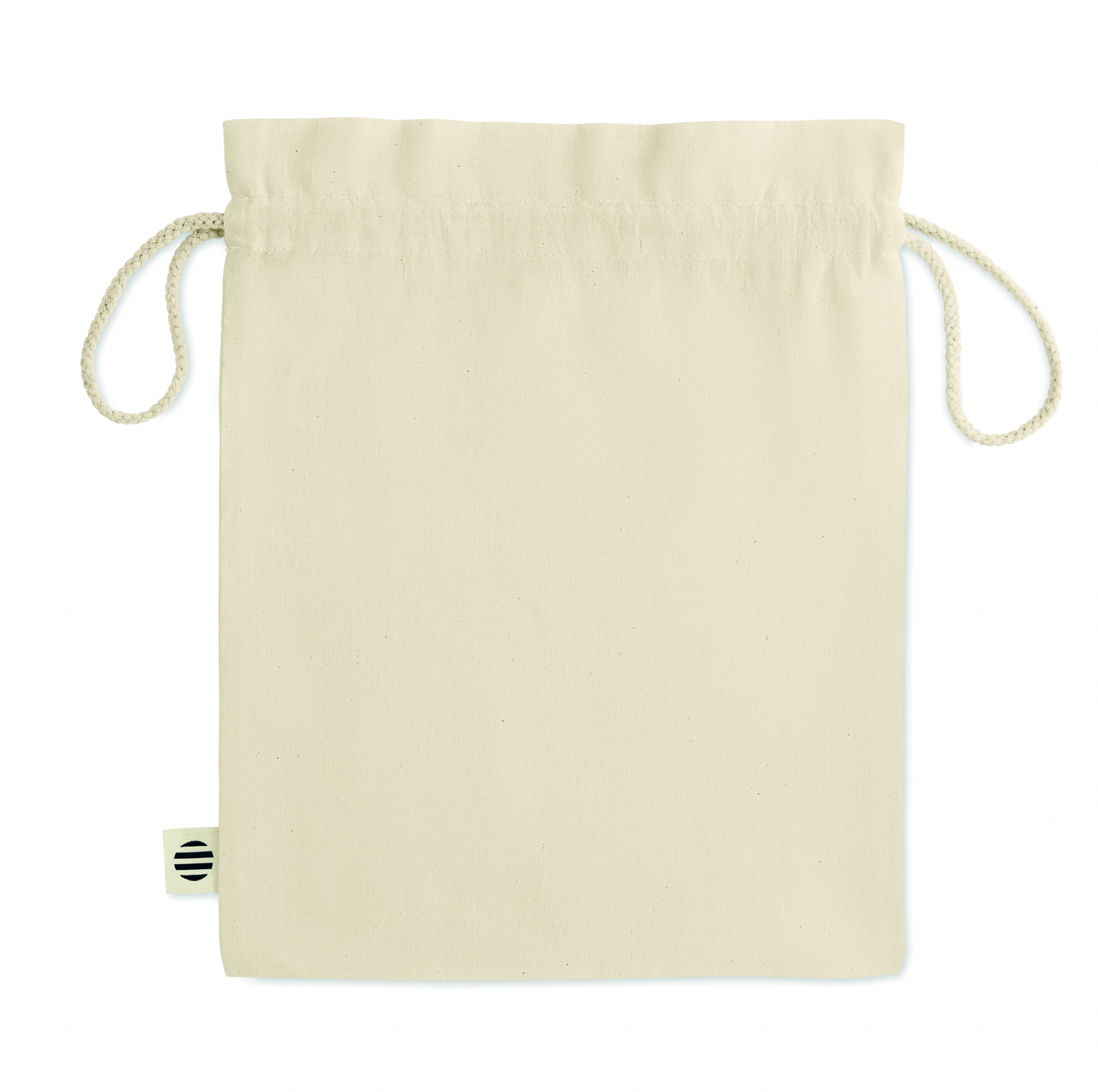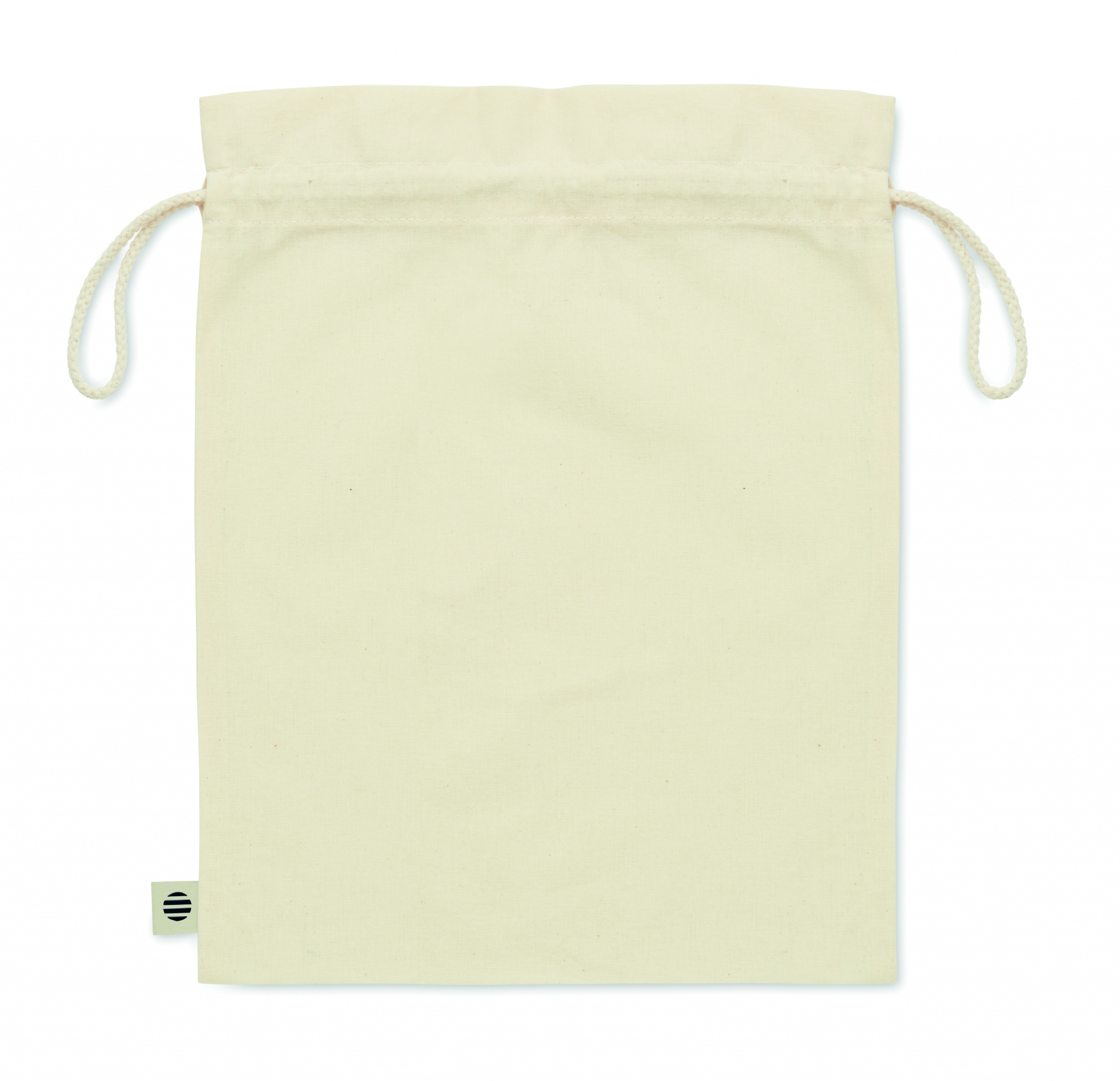 105 gr/m² keskikokoinen orgaanisesta puuvillas valmistettu pussi, kiristysnauhalla.