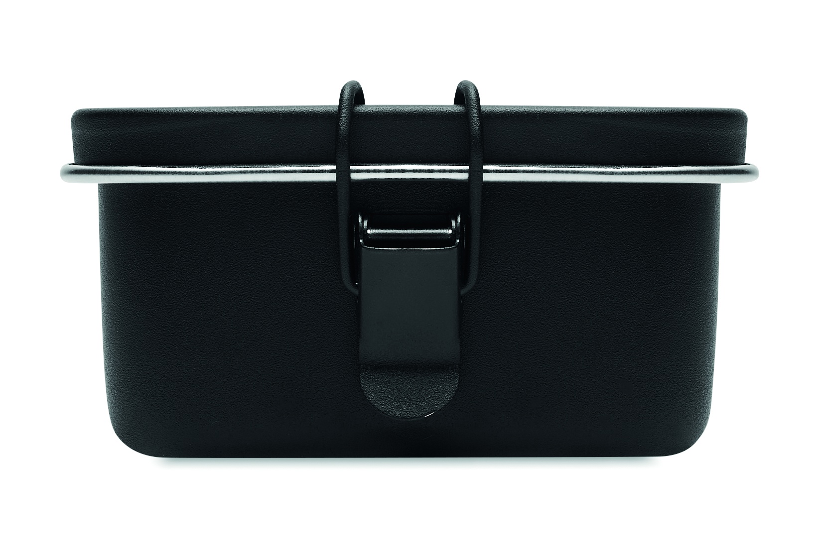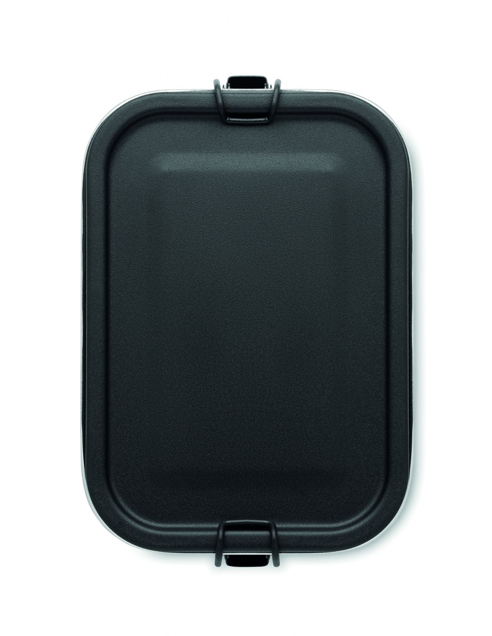 Ruostumattomasta teräksestä valmistettu 750 ml lounasrasia, varmoilla sivusoljilla.