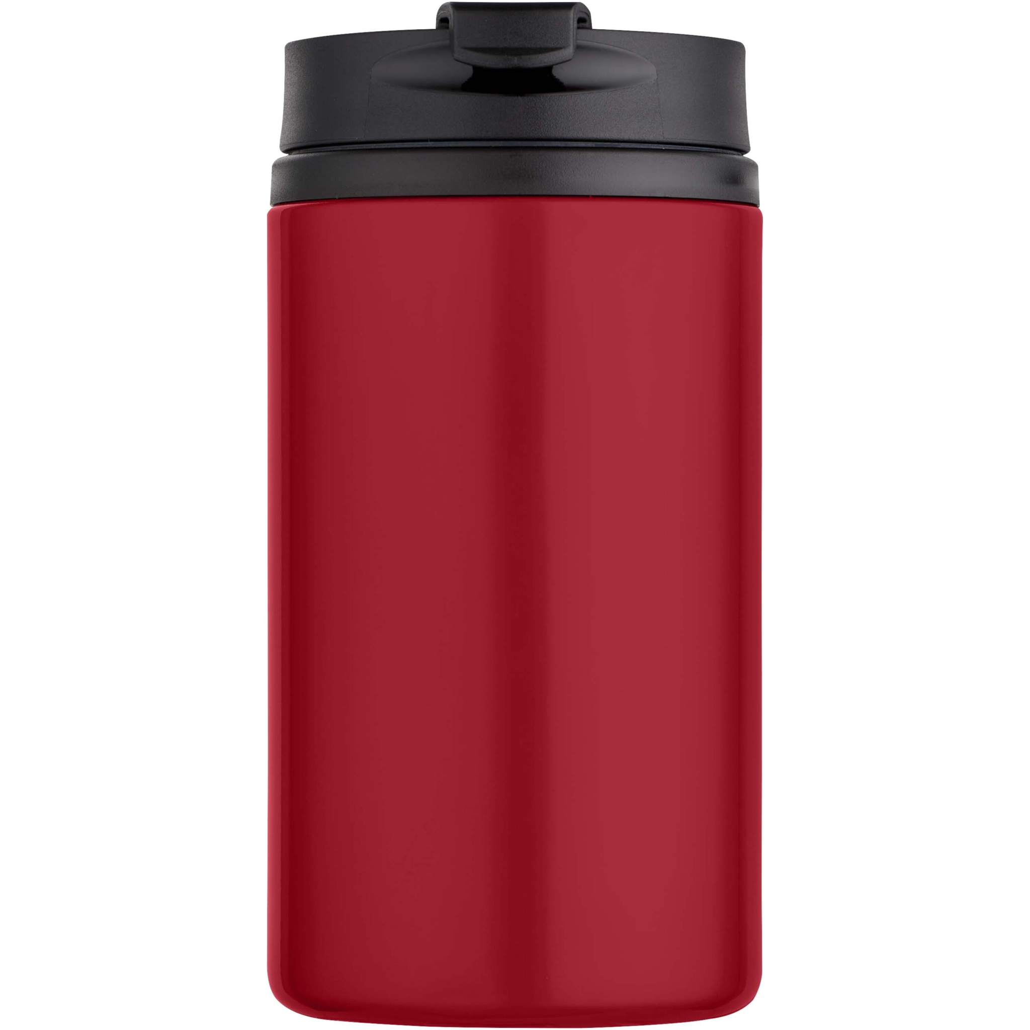 Mojave RCS-kierrätetystä ruostumattomasta teräksestä valmistettu 250 ml:n eristetty juomamuki pitää juomat lämpiminä pidempään. Vankan mutta tyylikkään muotoilunsa ansiosta mikä tahansa tähän juomamukiin kiinnitetty logo kiinnittää huomion. PP-muovin ja ruostumattoman teräksen yhdistelmän ansiosta Mojave-juomamuki on vahva, ruosteenkestävä ja helposti puhdistettava. Kierrettävän kannen avulla juomamuki on helppo avata ja sulkea, ja juominen onnistuu helposti.