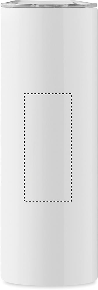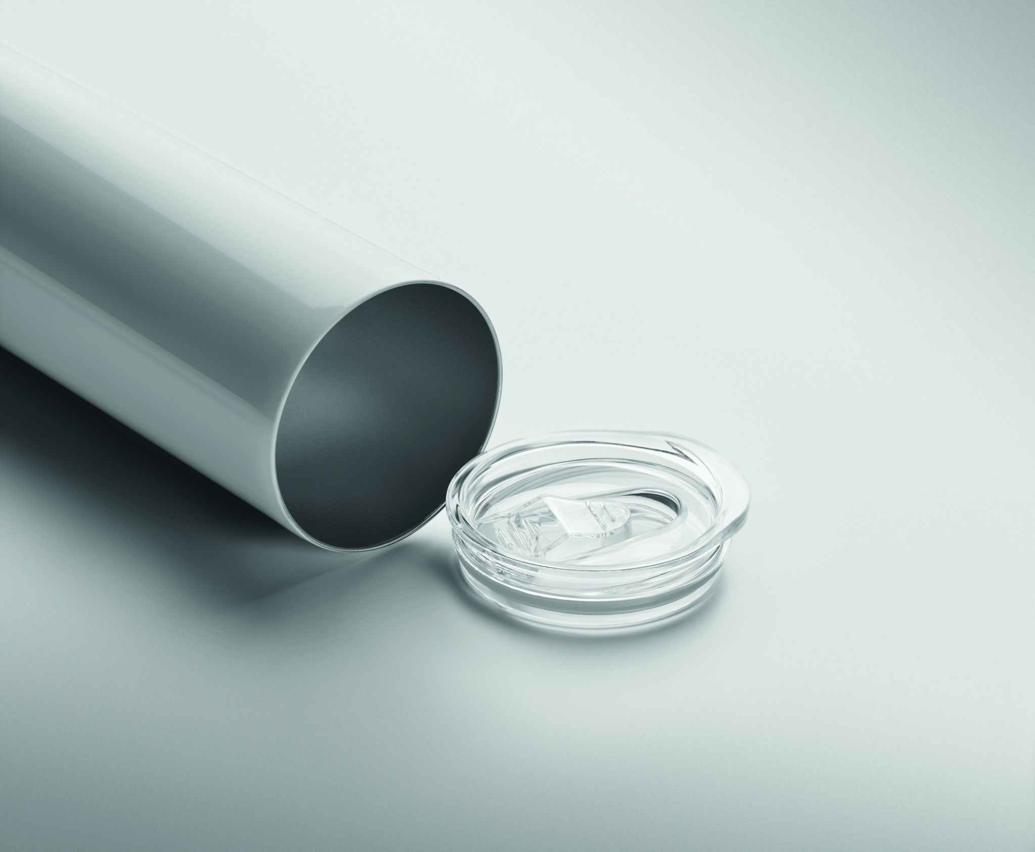 Kaksiseinäinen ruostumattomasta teräksestä valmistettu 590 ml muki PS kannella ja erikoispinnoite sublimaatio painatukseen.