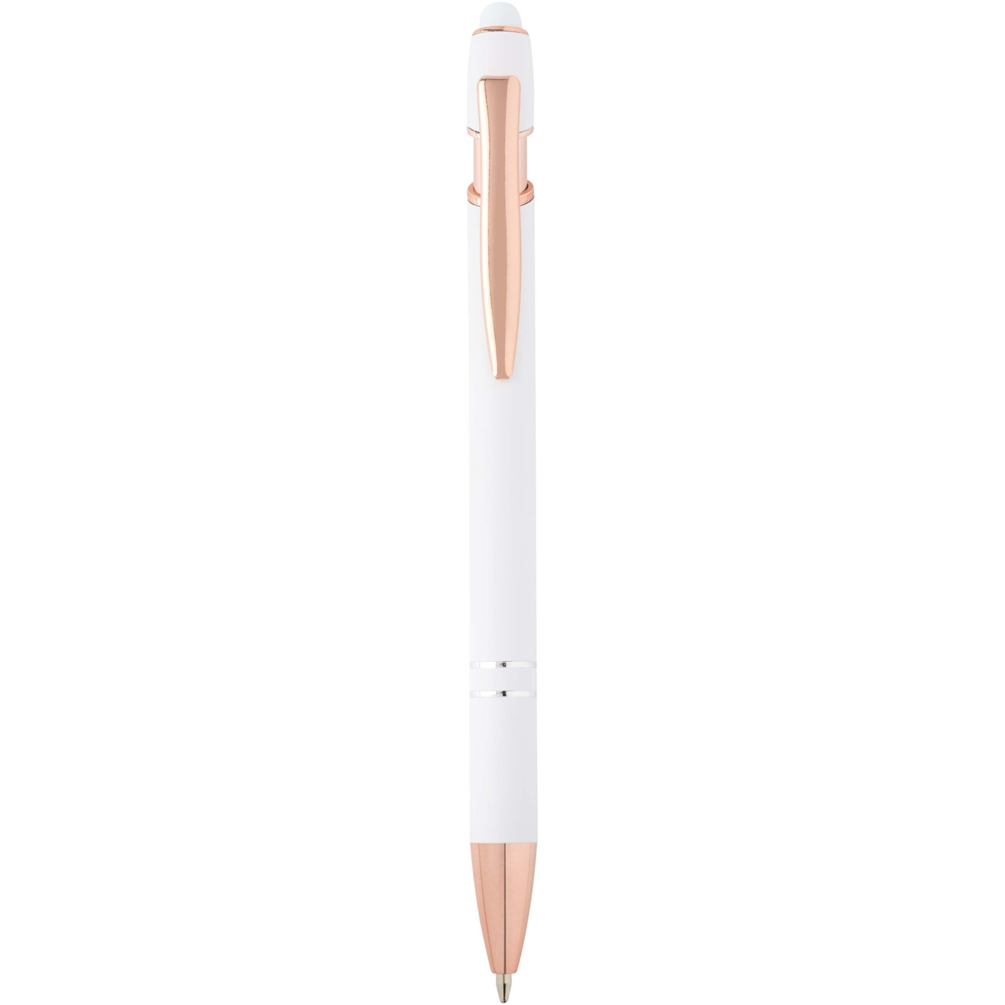 Ruusukullanvärisessä Nanna kuulakärkikynässä on kierrätetystä alumiinista valmistettu runko ja silikoninen kosketuskynä. Se vähentää myös kaatopaikoille päätyvän jätteen määrää ja auttaa säästämään luonnonvaroja kasvihuonepäästöjen vähentämiseksi. Musteen väri: Musta. Kirjoituspituus: 800 metriä. Lyijyn paksuus: 1,0 mm.
