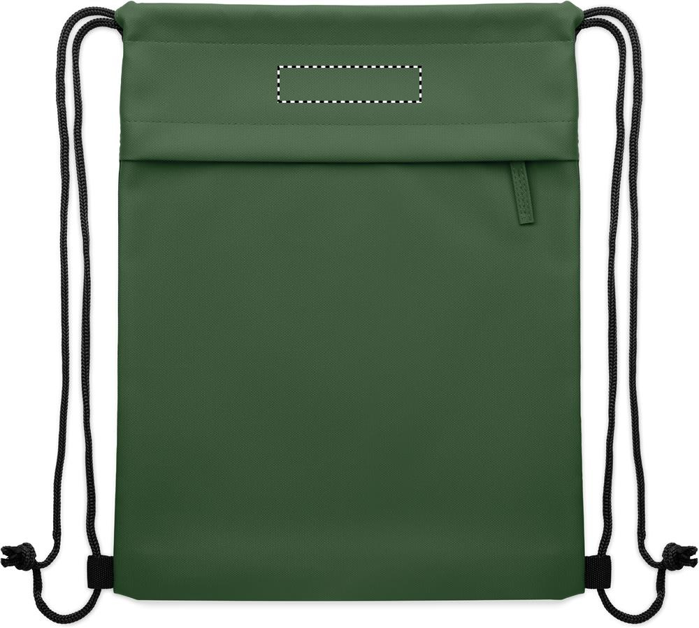Narureppu, jossa PU-päällysteinen 600D RPET -polyesteri ja 190T RPET -polyesterivuori. Vetoketjullinen etutasku.