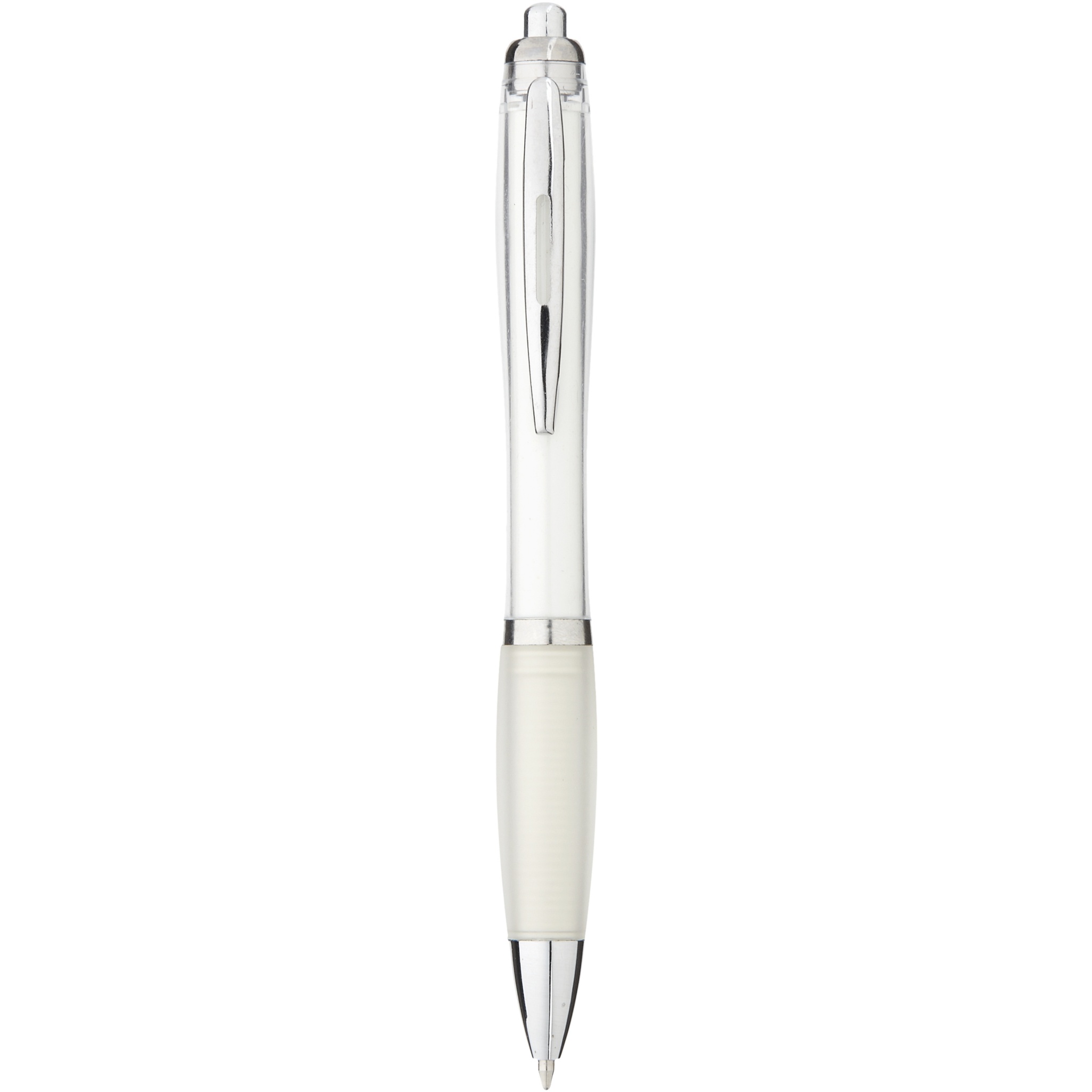 Kuulakärkikynä, jossa on click-toiminto. Pehmeä ote.