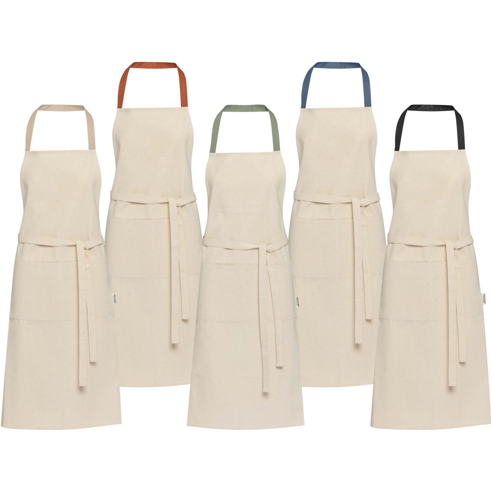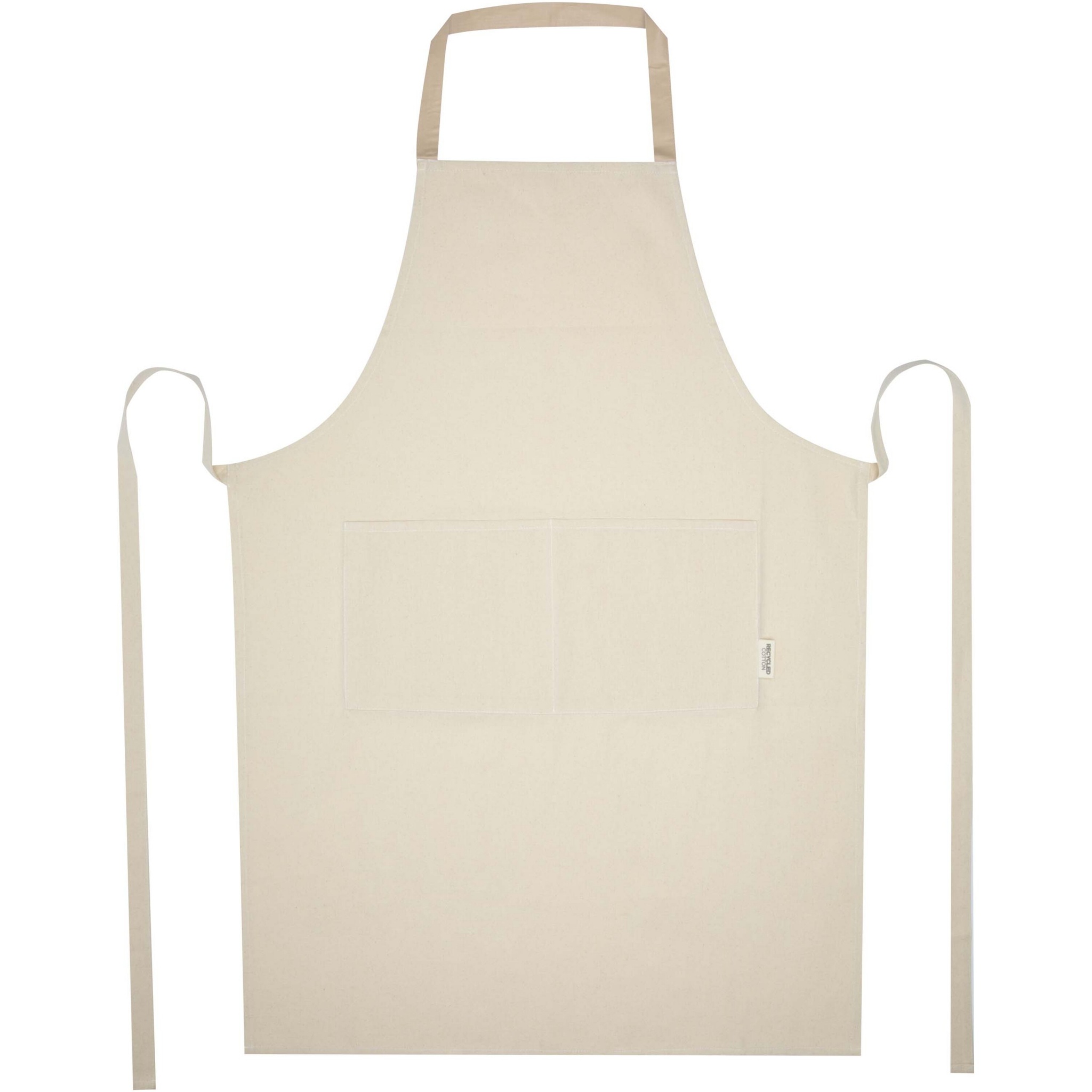 Nia esiliina on valmistettu 100-prosenttisesti GRS-sertifioidusta 200 g/m²:n kierrätetystä puuvillasta. Esiliina on luonnollisen puuvillan värinen, siinä on kontrastivärinen niskalenkki ja se suojaa vaatteita ruoanlaiton aikana. Käytännöllisessä ja tyylikkäässä Nia esiliinassa on kaksi vierekkäistä taskua, joiden yhdistetty koko on 45 x 20 cm, sekä 1 metrin pituiset taakse sidottavat kiinnitysnauhat.