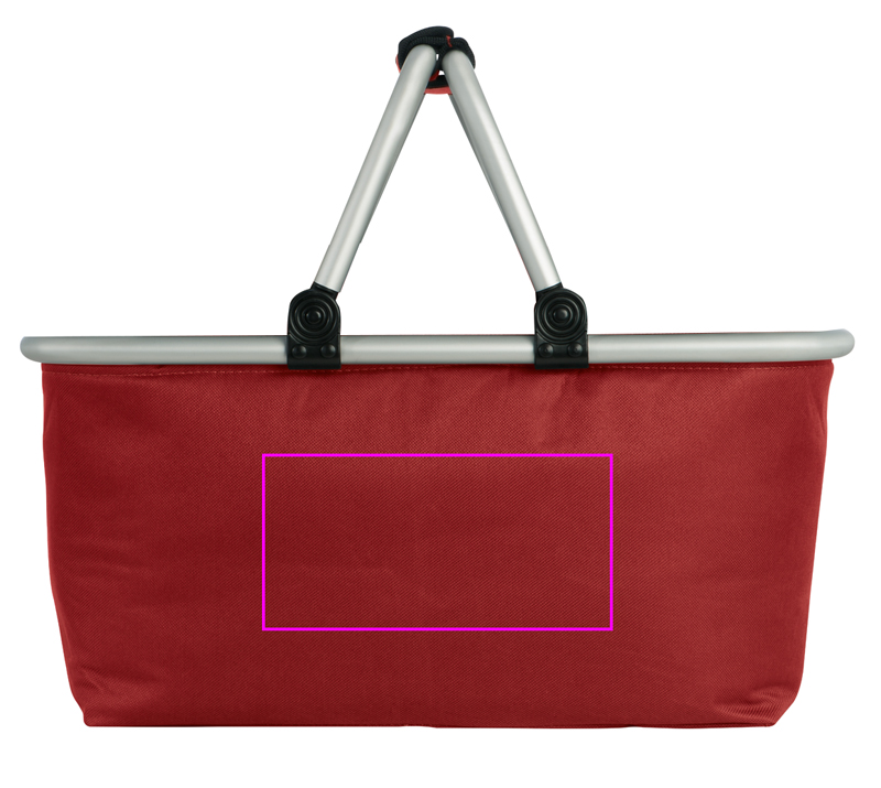 Ostoskori alumiinirungolla eri väreissä tekee ostoksista helppoa. Painamme logosi yhdelle puolelle,
