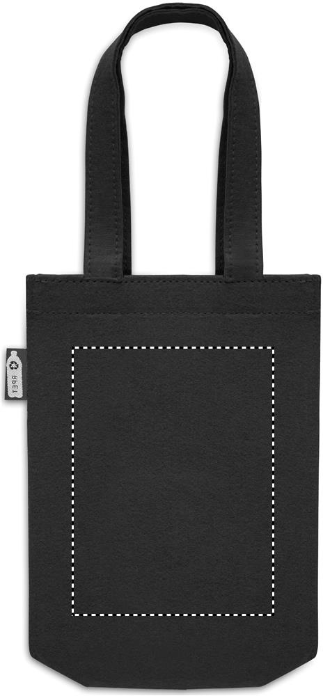 Pieni RPET-huopalahja- tai herkkulaukku, jossa lyhyet kahvat ja kulmakivet. Huovan paksuus: 1 mm.