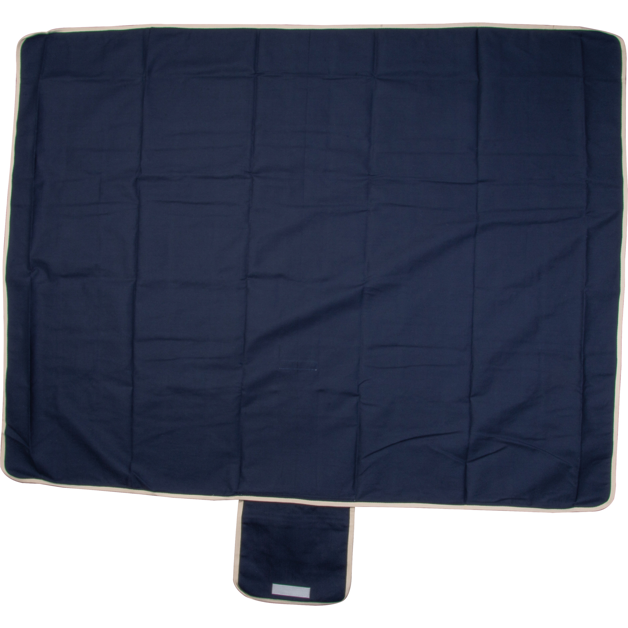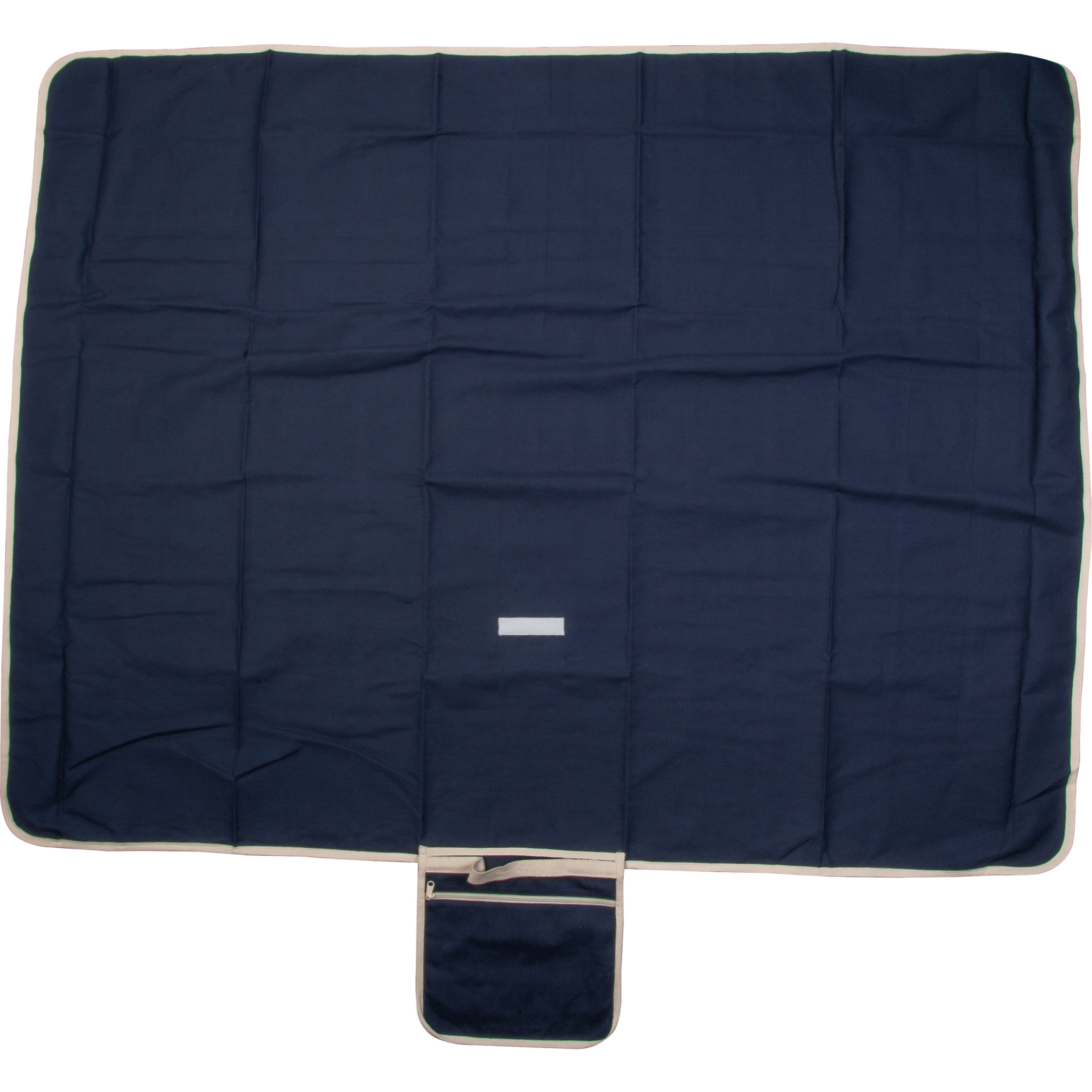 Kierrätetystä puuvillasta valmistettu piknikviltti (kankaan paino: 320 g/m²), jossa on kantokahva, vetoketjullinen tasku ja tarranauhalla suljettava läppä. Mitat avattuna: 160 x 128 cm.