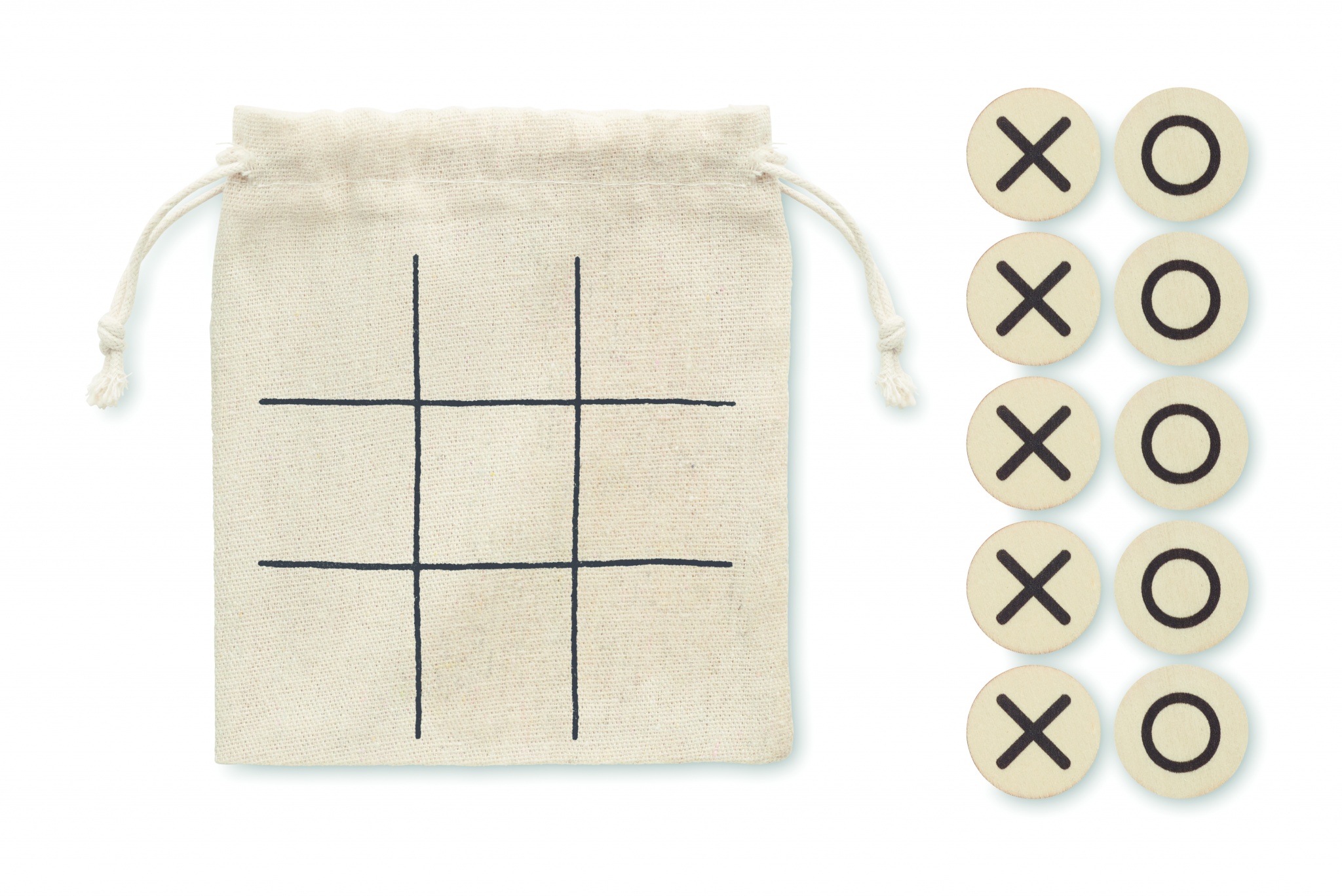 Puinen risti-nolla -peli. Toimitetaan puuvillapussissa.