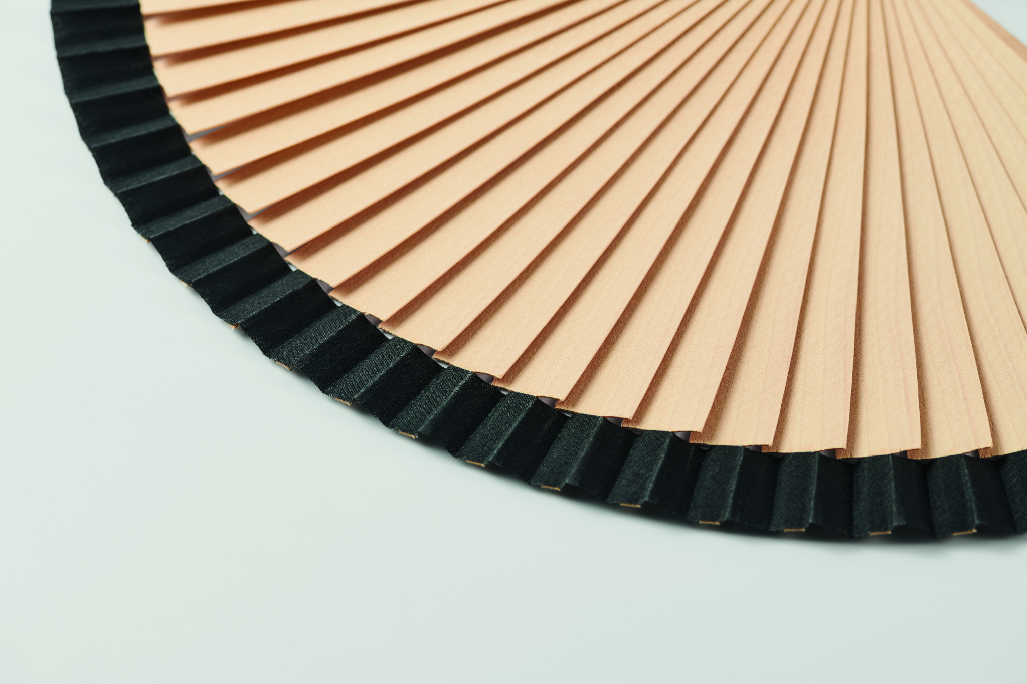 Puusta valmistettu käsiviuhka Schima Superba -puusta ja polyesteristä, 34 ruotoa. Tyylikäs muotoilu.