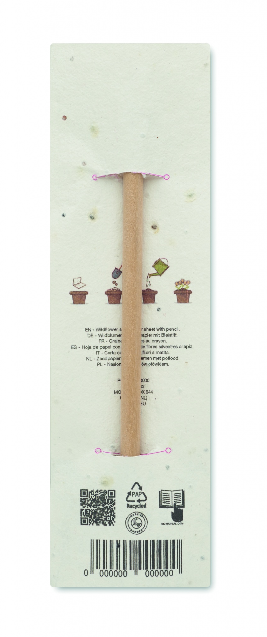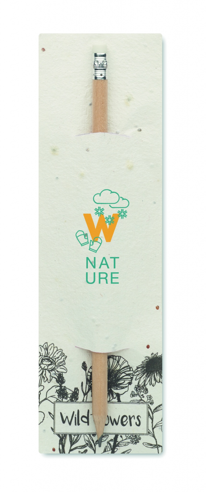 Luonnonpuusta valmistettu lyijykynä, jossa on pyyhekumi. Toimitetaan siemenpaperipussissa ( luonnonkukkia).
